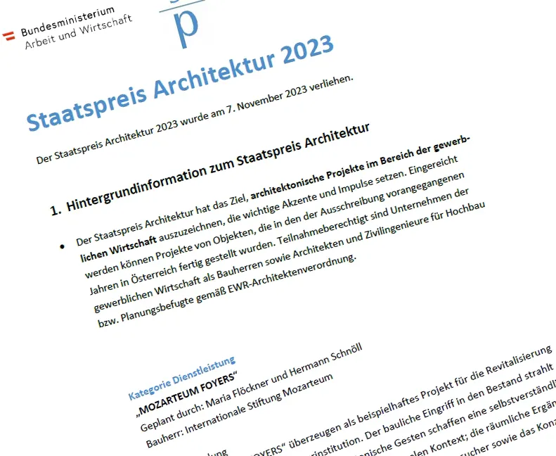 "Der Staatspreis Architektur hat das Ziel, architektonische Projekte im Bereich der gewerblichen Wirtschaft auszuzeichnen, die wichtige Akzente und Impulse setzen."