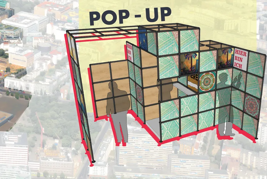 Die Lösung der Fellows war ein POP-UP, also ein mobiler Aufsteller der den Namen BrückenSchlag erhielt. Brückenschlag kam aus der Idee, die Kluft zwischen den Gruppen von Menschen zu überbrücken. Das POP-UP ist dafür gedacht, authentische Interaktionen zwischen Flüchtlingen und den Gemeinden zu ermöglichen. Die Hoffnung dafür ist, dass diese Interaktionen Beschäftigungs-, Bildungs- und soziale Unterstützungsmöglichkeiten fördern, um für die Gemeinden vorteilhaft und nachhaltig zu wirken.