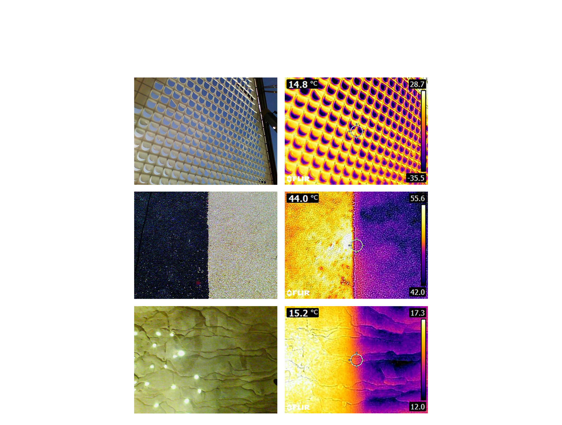 Um ein übermäßiges Aufheizen der Oberflächen zu verhindern, wurden weitestgehend helle Materialien gewählt, welche einen großen Teil der Solarstrahlung reflektieren und sich somit weniger stark aufheizen als dunkle Flächen. Zu Verschattung dienen, neben Vegetation und dem Schiffskörper selbst, auch die beiden Segel des Schiffes. Diese wurden hinsichtlich Ihrer Lage und Ausrichtung sowie des Materials optimiert. Die Segel spenden Schatten, heizen sich selbst aber nicht stark auf, dank der offenen Struktur des Gewebes, die Durchlüftung erlaubt.
