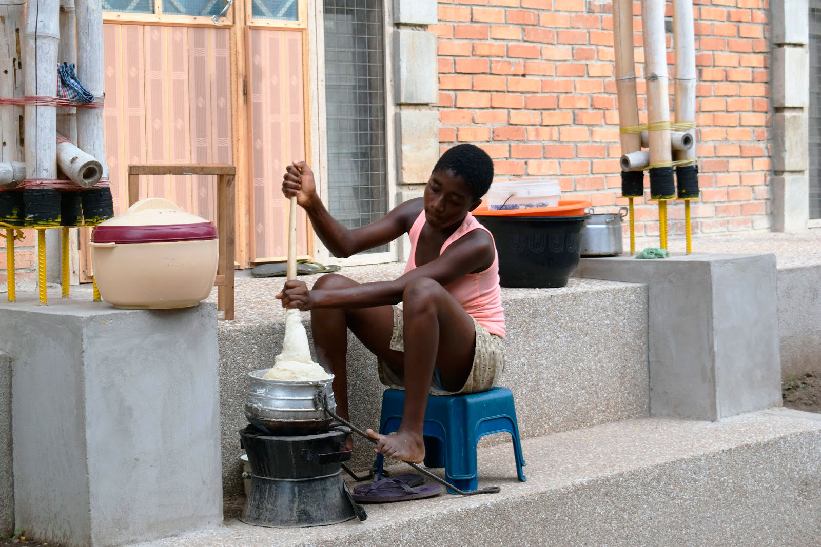 Das Hebammenhaus ist ein Non-Profit-Projekt, Architektur als soziale Verantwortlichkeit. Es hat etliche Beteiligte: Peter Behrens School of Architecture, PBSA Hochschule Düsseldorf; Georgia Institute Of Technology, STO Summerschool und auch Transsolar. Seit 2015 beschäftigten sich etwa 50 Studierende mit dem Entwurf und der Konstruktion einer Hebammenschule mit Wohnheim, in der deutsche und ghanaische Hebammen oder Ärzte lernen, lehren und arbeiten. Auch die örtliche Schule für Handwerker „Havé Tech“ sollte mit einbezogen sein. Seit 2017 ist der Bau fertiggestellt.