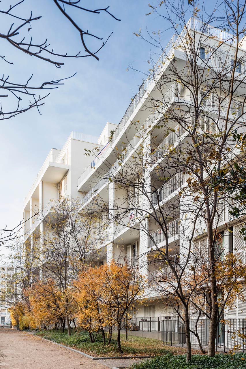 Basierend auf den Ergebnissen dieser Studie wurde die thermische Qualität der Gebäudehülle über den aktuellen, französischen Standard hinaus verbessert. Die Fassaden sind mit doppelt isolierten Glasbereichen mit Low-e-Beschichtung im Zwischenraum und einer äußeren Isolierung der massiven Mauern ausgestattet. In den Badezimmern wird ein Entlüftungssystem verwendet und in den Fassaden wurden kleine Frischlufteinheiten eingebracht.