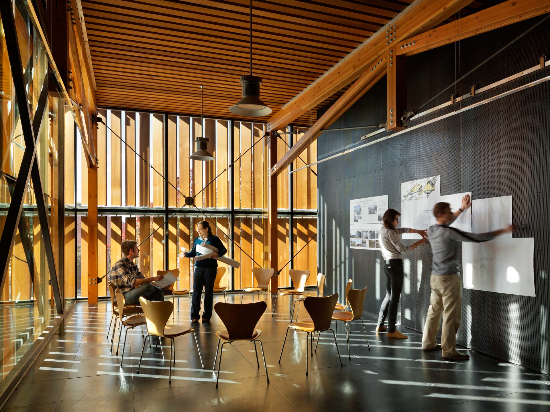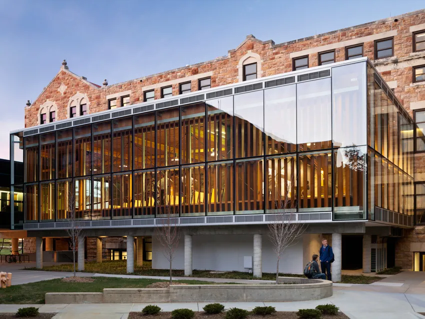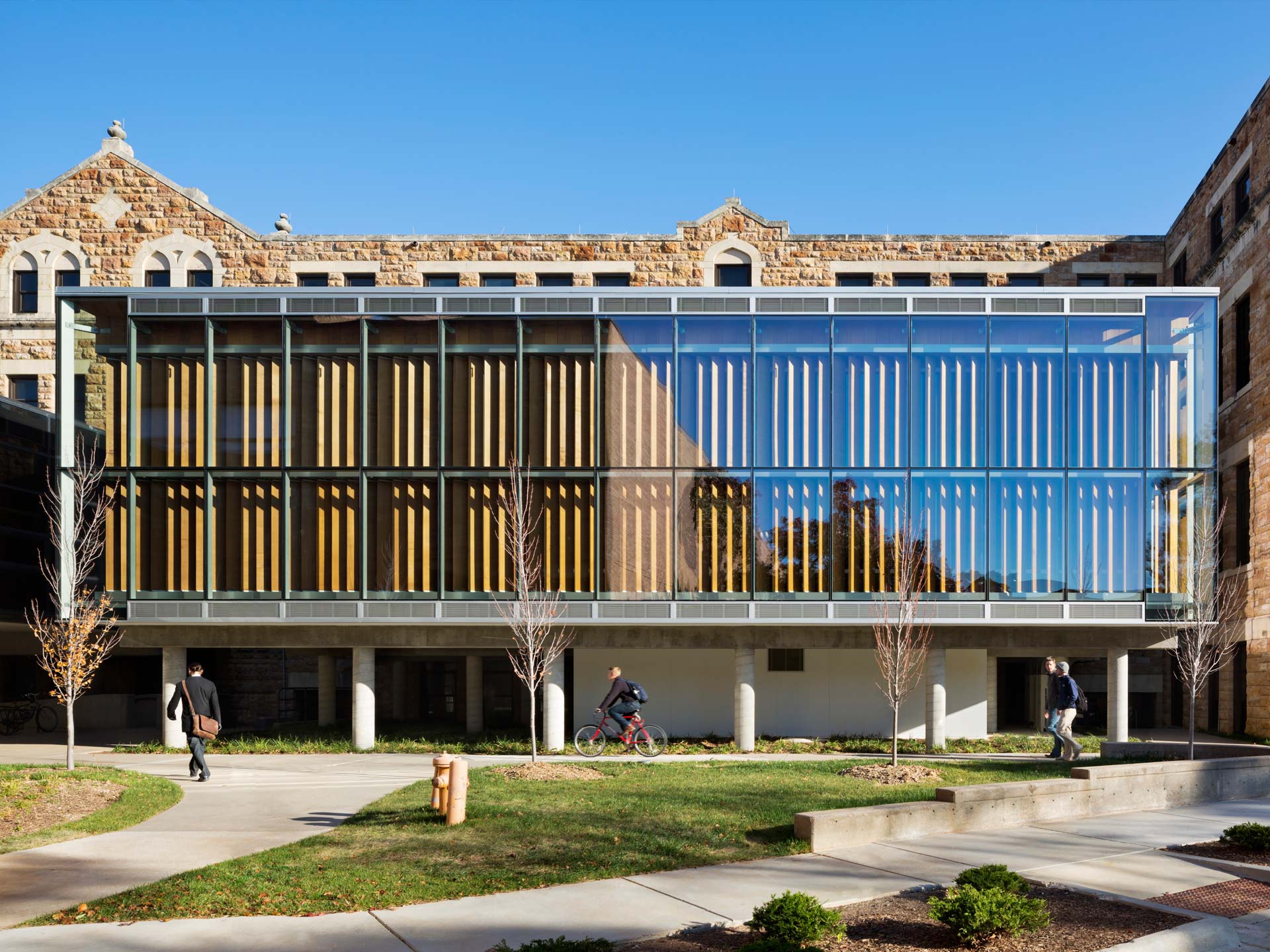 Der historische Bau der „School of Architecure“ Marvin Hall wurde um einen dringend benötigten Gemeinschaftsbereich und ein Auditorium erweitert. Entworfen und gebaut wurde das Forum von promovierenden Architektur-Studenten und Teilnehmern des Studio 804, dem Design/Build-Programm der Fakultät für Architektur, unterstützt durch Experten aus relevanten Branchen. Transsolar beriet den Entwurf und die Integration der klimagerechten Doppelfassade und natürlichen Belüftungsstrategie.