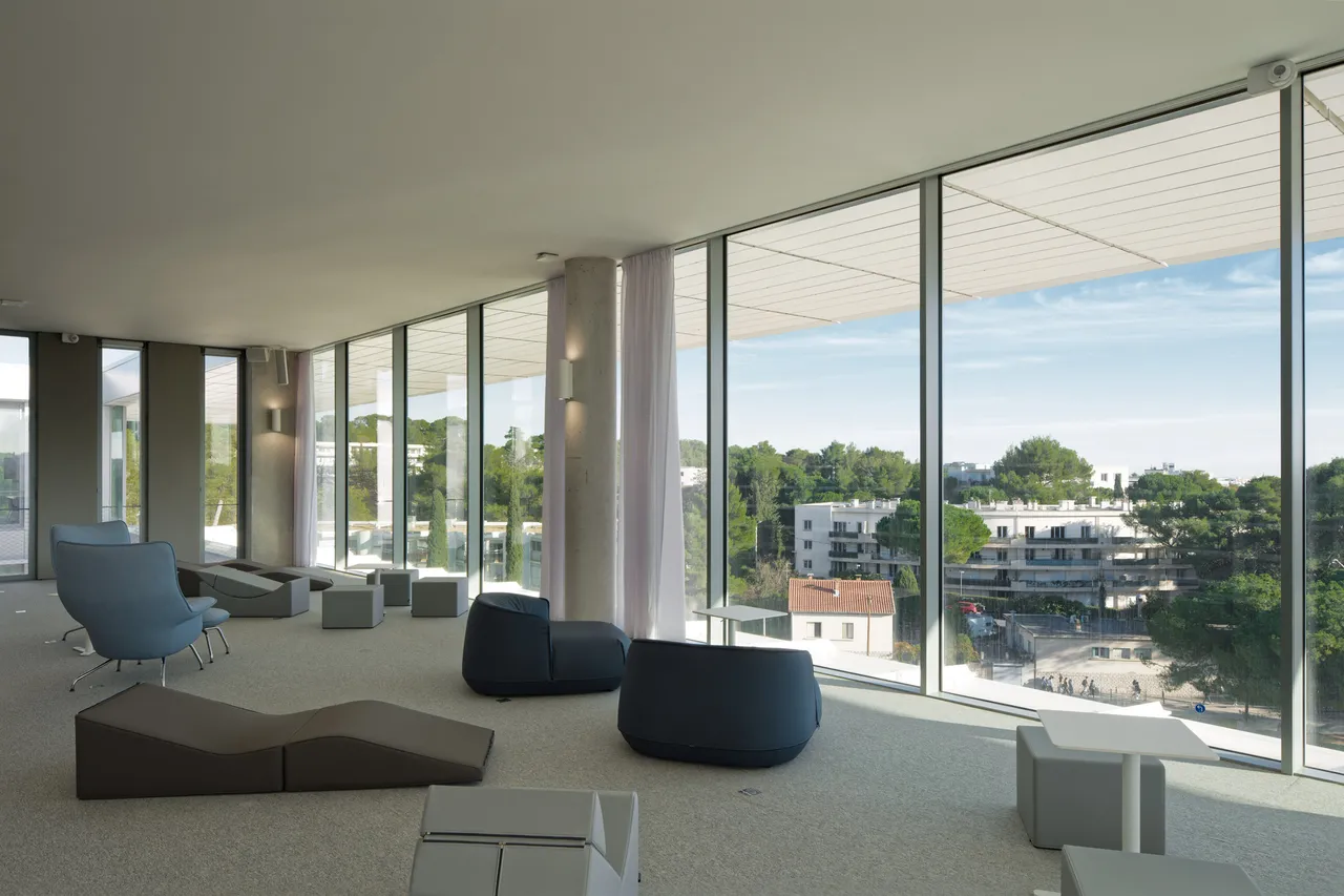 Mit dem Learning Center Atrium zeigt die Universität Montpellier ihre Vision einer Bibliothek in einer zunehmend digitalisierten Welt. Als Treffpunkt konzipiert, bietet das Atrium im Erdgeschoss viel Raum für Kontakt und Austausch unter den Studierenden; daran angeschlossen sind die Rezeption, die Cafeteria und die Ausstellungshallen. In drei Ebenen liegen Lese- und Arbeitsräume übereinander und bieten Möglichkeiten sowohl einzeln, als auch in kleinen Gruppen zu arbeiten. Hinzu kommen weitere Büroräume für Dienstleistungen und Buchbearbeitung.