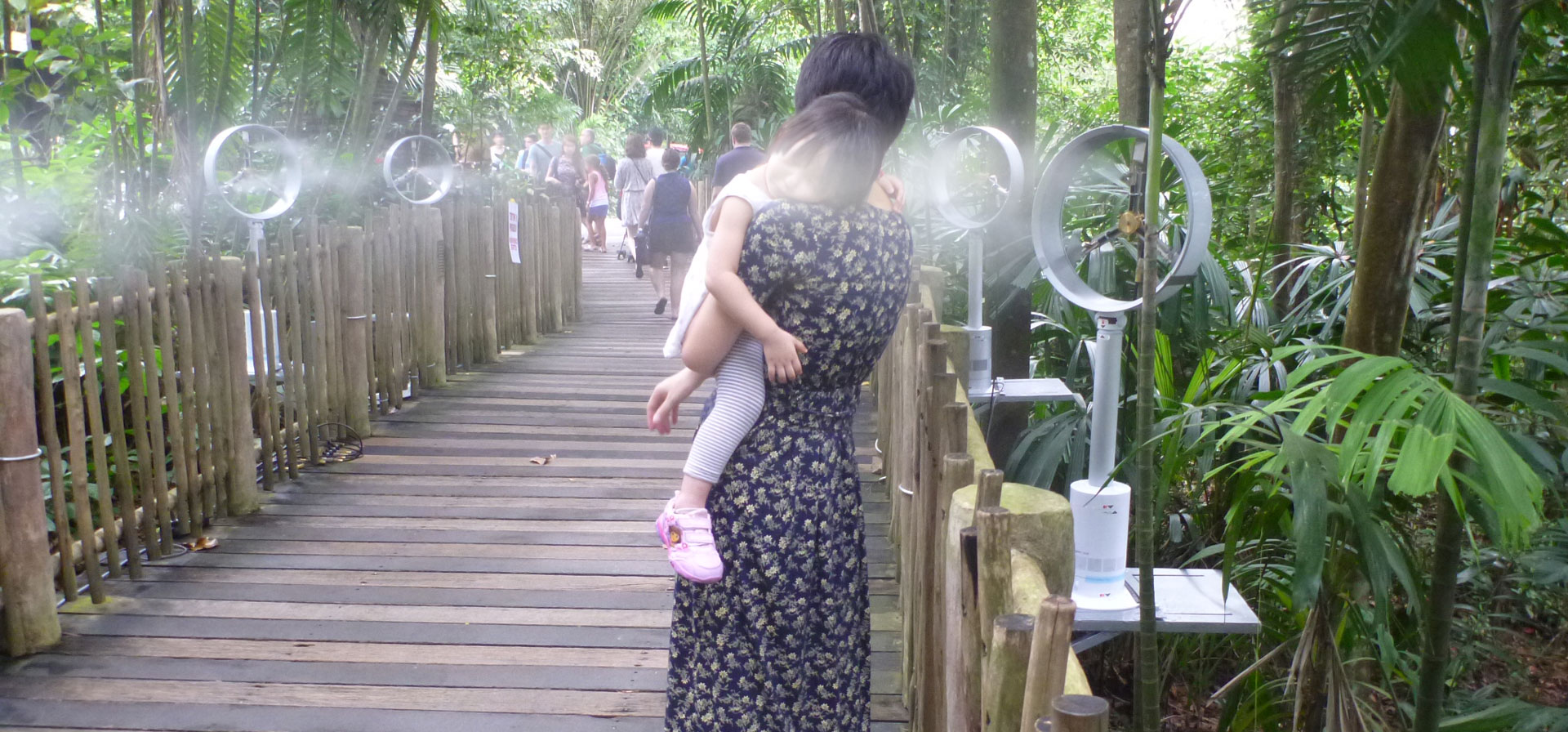 Ein Thema beim Projekt Mandai Zoo Singapur war, den Komfort für die Besucher im Freien zu verbessern. Obwohl nicht zu heiß, werden die feuchtwarmen Klimabedingungen in den Tropen oft als unangenehme empfunden. Während die Klimaingenieure für geschlossene Räume einige wirkungsvolle und doch energiesparende Strategien aufzählen können, mit denen den Menschen das Klima dort angenehm gestaltet werden kann, sind vergleichbare Möglichkeiten im Freien weniger vielfältig und begrenzt. Gängige Praxis solchen klimatischen Herausforderungen im Freien zu begegnen, ist das Verwenden von Nebelanlagen. Die Besucher lehnen diese jedoch oft ab, da sie mit Wassertröpfchen besprüht und durch Lärm gestört werden.