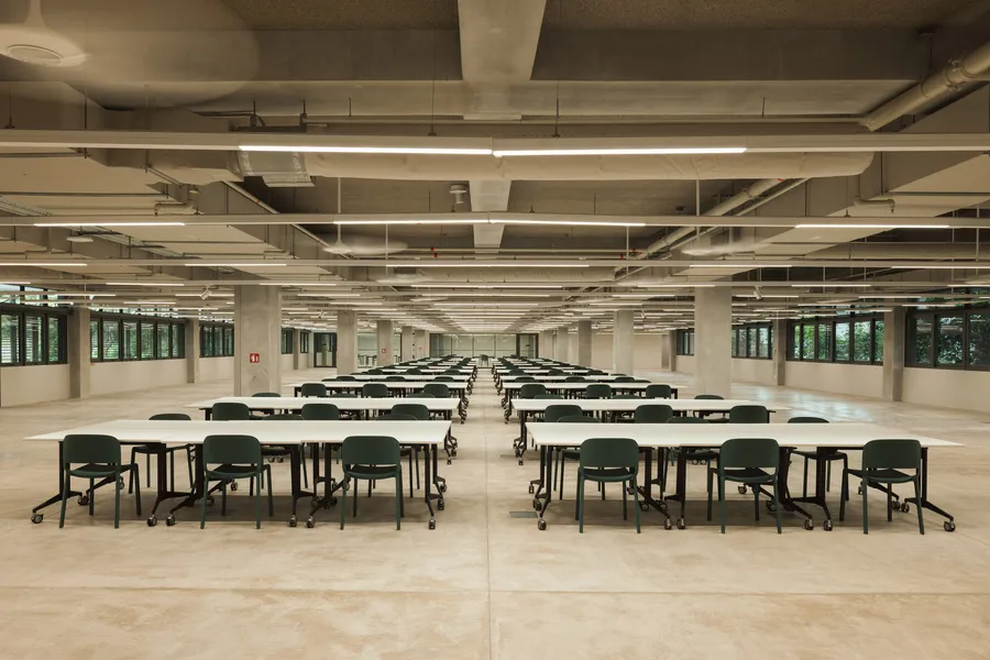 Die Anordnung und Abfolge der thermischen Zonen in den verschiedenen Programmbereichen wurde entsprechend ihrer jeweiligen Anforderungen organisiert. Viele Bereiche wurden bewusst als Außenbereiche konzipiert, die vor Wind, Regen und Blendung geschützt sind, aber auch über viel Tageslicht und eine beste natürliche Belüftung verfügen. Für große Nutzungsbereiche gelten nun erweiterte Temperatur- und Feuchtigkeitsbereiche, was mit hybrider Kühlung erzielt wird, d. h. einer Kombination aus Deckenventilatoren und einem reinen Frischluftsystem. Die leicht erhöhten Raumlufttemperaturen führen zu geringeren Unterschieden zwischen innen und außen. Dies ermöglicht einen problemlosen Übergang von einer temperierten mechanischen Luftzufuhr zu natürlicher Belüftung. Der Ansatz unterstreicht die Rolle der Gestaltung von Fassaden und der thermischen Zonierung von tropischen Gebäuden zugunsten einer natürlichen Belüftung und dem damit verbundenen Potential für erhebliche Energieeinsparung und Minderung von CO2-Emissionen.