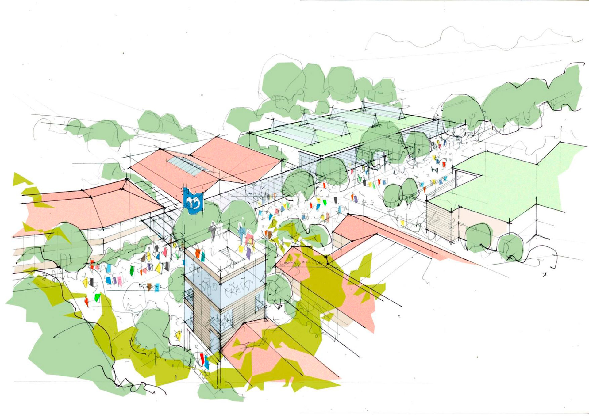 Es galt, die Hülle der Halle dafür nicht wesentlich zu verändern. Eingestellte Ebenen erzeugen Zonen und erzielen die angestrebte Nutzfläche. Aus diesem sehr einfachen und nachhaltigen Ansatz ergeben sich Themen wie z.B. kühle Oberflächen im Winter, die mittels Strahlungsquellen kompensiert werden.