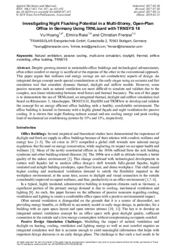 Keywords: Natural ventilation, passive cooling, multi-zone simulation, daylight, thermal, airflow modelling, office building, TRNSYS