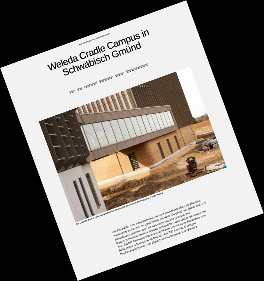 The Magazine for Architecture + Construction features the Weleda Cradle Campus, with „the largest continuous rammed-earth building in Germany".