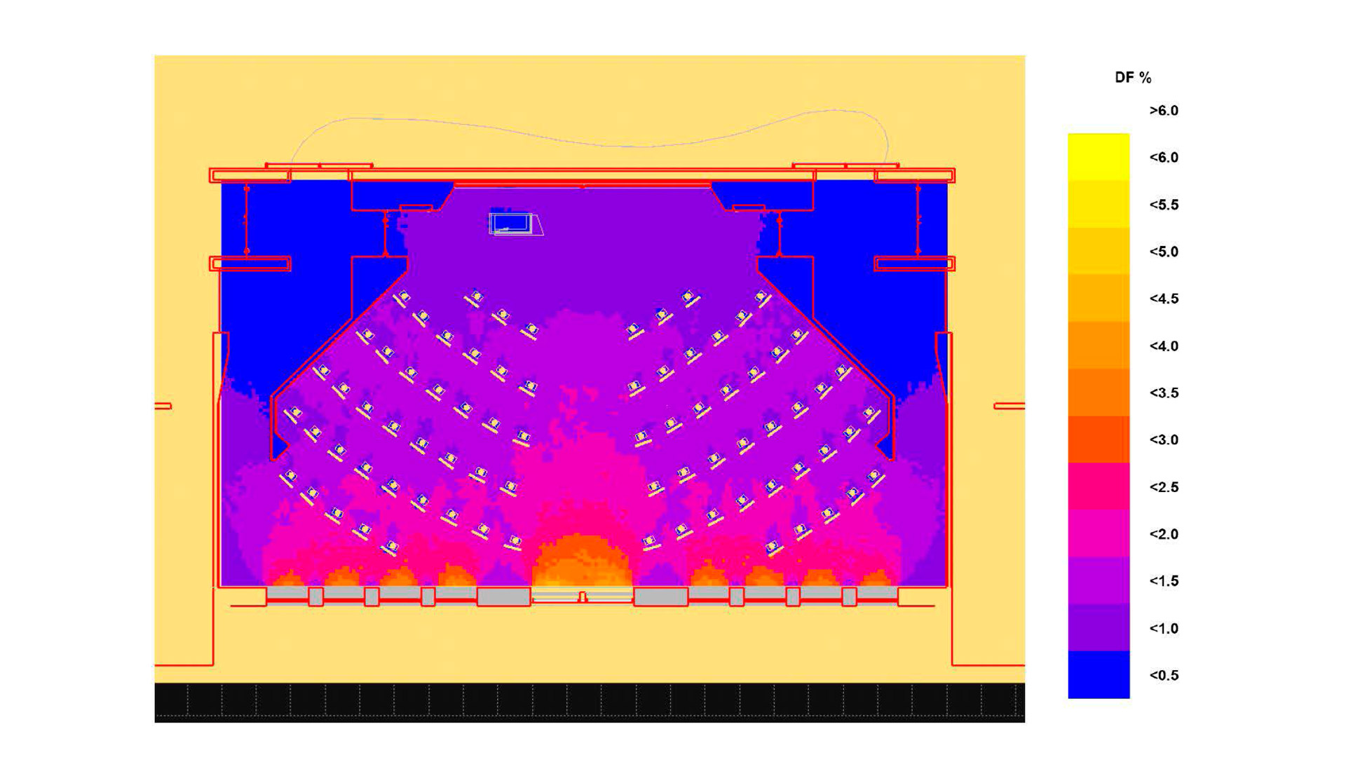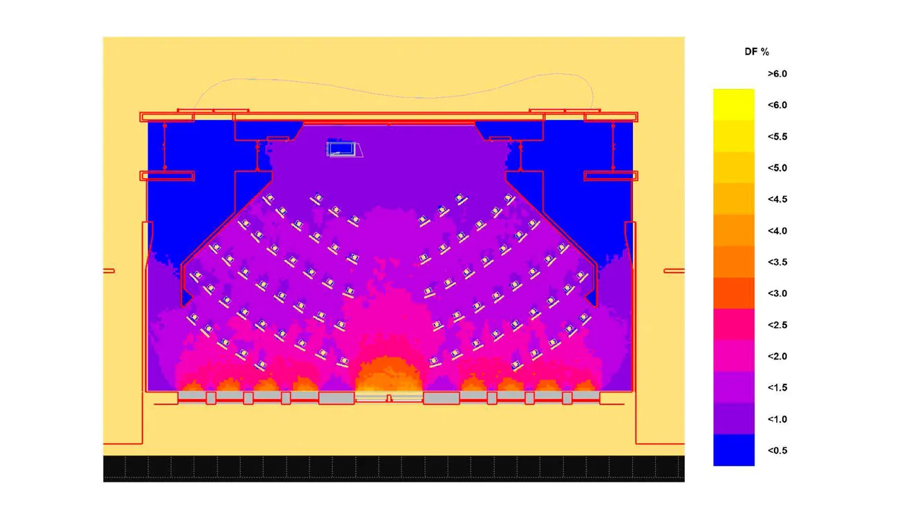 Enfin, Transsolar a étudié la performance des espaces en matière de lumière du jour, potentiel de ventilation naturelle et nécessité de protections solaires sur les verrières de la toiture centrale.