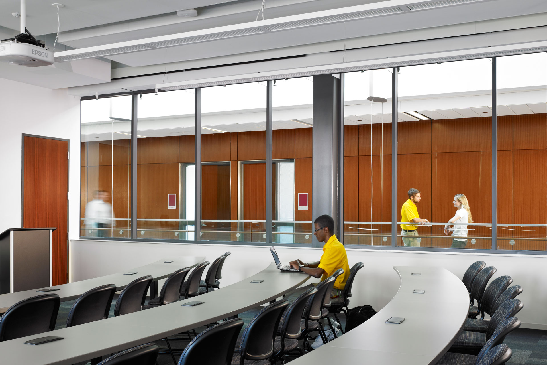 Ce bâtiment de salles de cours lumineuses est devenu l’entrée Sud de la Loyola University. L’université souhaitait un bâtiment s’inscrivant de manière harmonieuse aux bâtiments en brique du campus existant, ce qui résulta dans un extérieur composé de brique, calcaire et tuiles d’argile. Quant à l’intérieur, il expose fièrement les choix actifs et passifs pour le développement durable. Un atrium central organise les salles de cours et les espaces des facultés, et bénéficie d’une ventilation naturelle et de lumière naturelle abondante, il constitue le véritable coeur du campus. Le résultat est un bâtiment prêt pour la neutralité carbone avec une certification LEED Gold et une consommation énergétique inférieure à 94 kWh/m2– vérifiée en occupation.