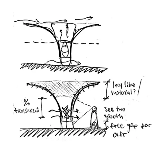 Das peruanische Trujillo gilt als heimliche Kulturhauptstadt und als zweitgrößter Ballungsraum des Landes. „Der nahe Pazifik sorgt für angenehmes und frühlingshaftes Klima“, sagt Wikipedia. Der Architekt Elmer Gutierrez kennt die Stadt gut, denn sie ist seine Heimat. Daher weiß er, dass die thermische Behaglichkeit im Freien in der Stadt durchaus verbesserungswürdig ist und dass es dort zwar Freiflächen gibt, aber pro Einwohner nur 2.1 m² Grünfläche. Das weniger als ein Viertel dessen, was die Welt Gesundheitsorganisation empfiehlt. Dabei schickt die Sonne dort jährlich 2000 kWh Energie auf jeden Quadratmeter, also rund doppelt so viel wie z.B. in Stuttgart. Und Elmer weiß auch, dass es junge Bäume schwer haben, dort groß zu werden. Darin wurzelt sein Ansatz, etwas zu schaffen, dass den Menschen schon mal Schatten spendet und zugleich Baumsetzlinge schützt und ihnen ermöglicht, groß zu werden, um dann allein für besseres Stadtklima und mehr Komfort im Freien zu sorgen.
