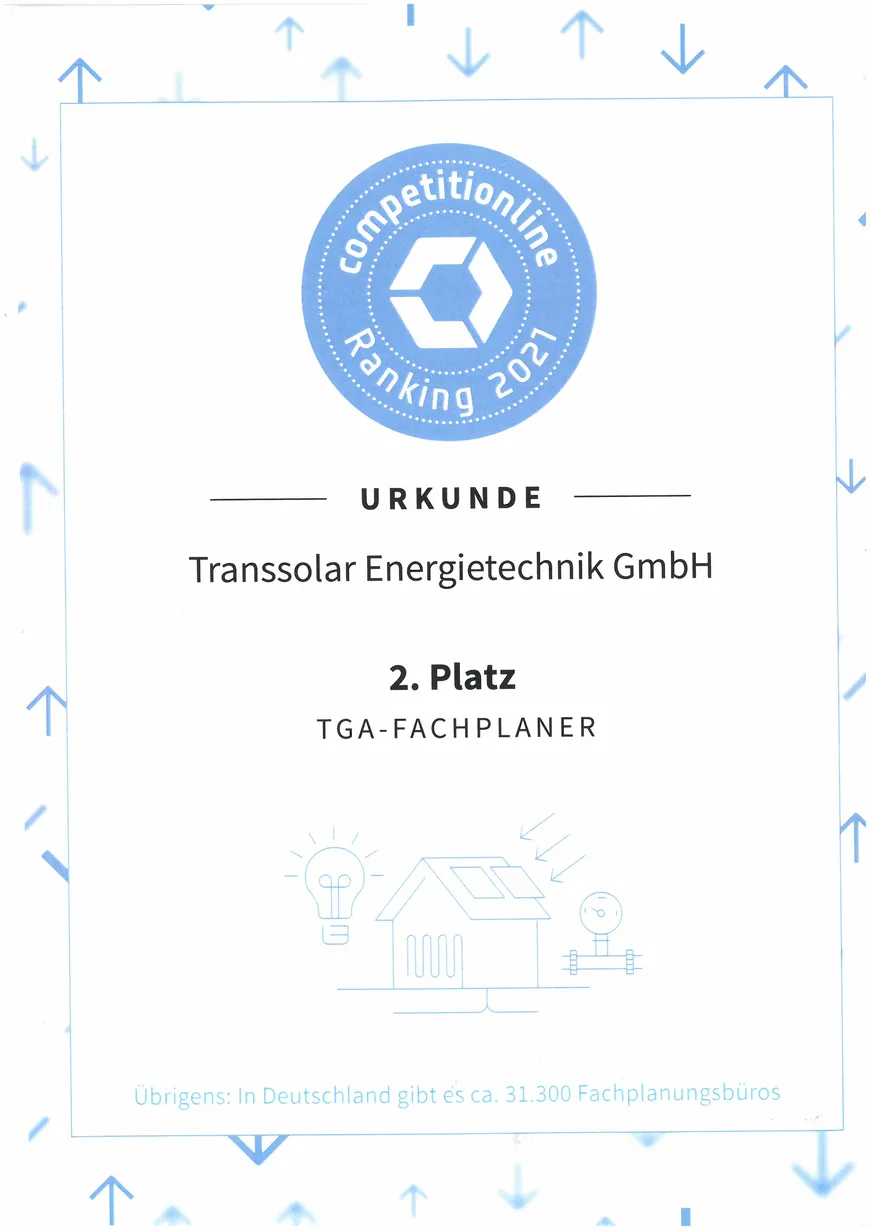 Platz 2 der Sparte TGA-Fachplaner beruht auf der Kooperation mit unserem Partnerbüro Transplan-Technik-Bauplanung.