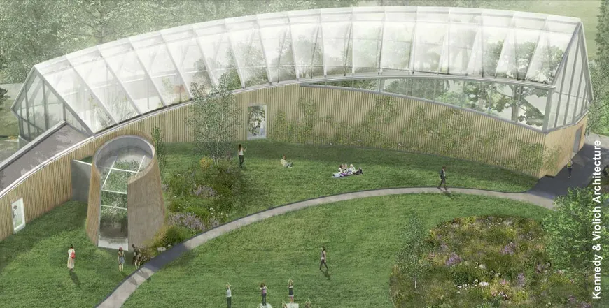 Eines der in 2017 ausgezeichneten Projekte ist die Global Flora in Wellesley, MA, USA, ein ganz außergewöhliches Niedrigenergiegebäude von Kennedy & Violich Architecture. In diesem Vorhaben wird mit Hilfe von Transsolar aus einem Gewächshaus, was normalerweise eher erschreckende Werte im Energie- und Wasserverbrauch aufweist, ein Netto-Nullenergiegebäude.