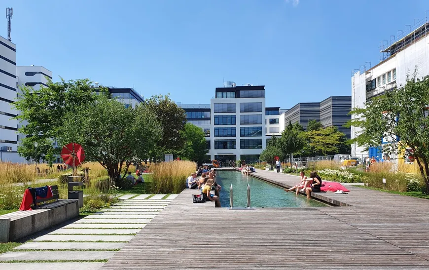 Nach erfolgreichen Jahren in der Landwehrstrasse freuen wir uns auf einen Neuanfang in der grünen Mitte des Campus Neue Balan 73. Der Standort ist grün, ruhig, vielseitig und bietet den Mitarbeitern sogar einen Pool.