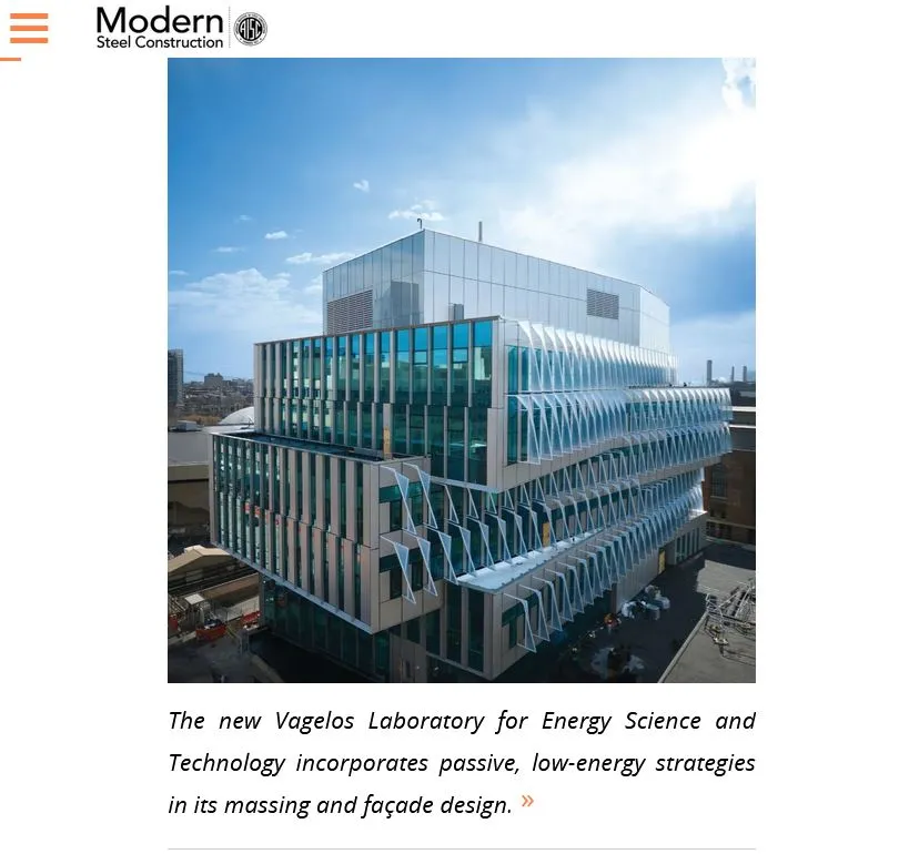 Modern Steel Construction features Vagelos Laboratory for Energy Science and Technology VLEST