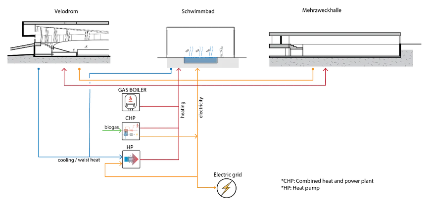 Transsolar entwickelte hierfür ein zukunftgerechtes Konzept, das guten Komfort für Besucher und Athleten bietet, bei effizienter Energieversorgung unter Einsatz erneuerbarer Energien und Strategien wie gezielter Nutzung von Sonnenenergie und Tageslicht, optimierten Gebäudehüllen, Abwärmenutzung und Wärmerückgewinnung.