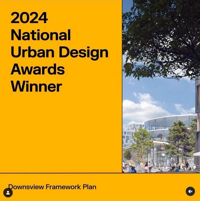 We are honored to share that our Downsview Framework Plan has received a National Urban Design Award in the Urban Design Plans category. The National Urban Design Awards are bestowed by the Royal Architectural Institute of Canada, The Canadian Institute of Planners, and The Canadian Society of Landscape Architects.
