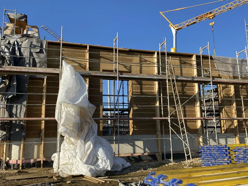Der Stampflehmbau in Schwäbisch Gmünd bei Weleda schreitet voran.