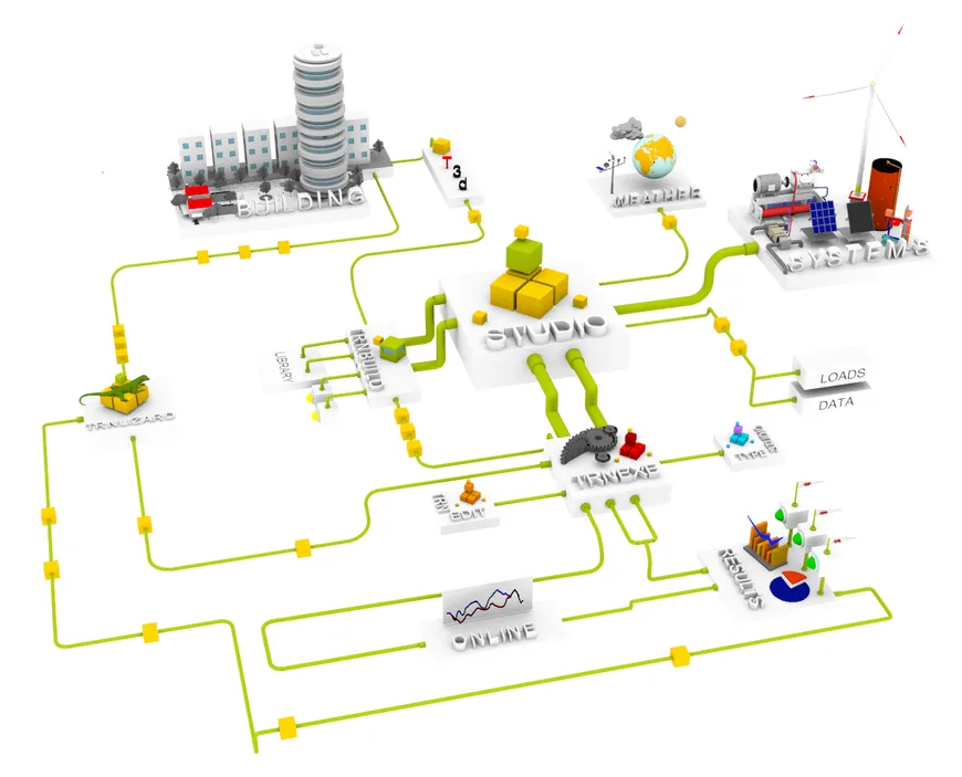 Seit 1992 entwickelt Transsolar KlimaEngineering innovative Energie- und Gebäudekonzepte, seit 1998 gibt es eine Webseite für TRNSYS. Im Lauf der Zeit haben sich die Konzepte deutlich weiterentwickelt; sie müssen aktuelle Standards erfüllen, Entwicklungen in der Gebäudeautomation integrieren und Innovationen in der Gebäudetechnik nutzen. Unsere Arbeit nennen wir KlimaEngineering. Unser Erfolg beruht auch auf Softwaretools und ihrer Verfügbarkeit, um innovative Energie- und Klimakonzepte modellieren zu können. Auch viele dieser Werkzeuge, mit denen die Ingenieure ihre kreativen Lösungen validieren, haben sich im Laufe der Jahre verändert. Einige kamen hinzu, andere wurden ersetzt – aber TRNSYS bleibt unser primäres Simulationstool.