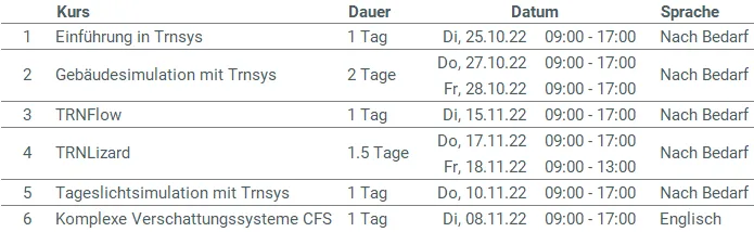 New TRNSYS online trainings scheduled
