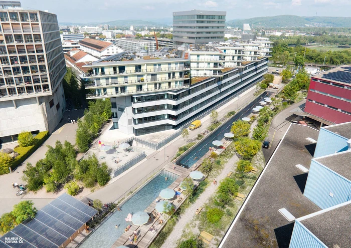 Das Potenzial zur Rückkühlung über den Pool ist jedoch gegeben und kann sowohl den Badekomfort erhöhen, also auch den Hitzeinseleffekt im Dreispitz verringern.