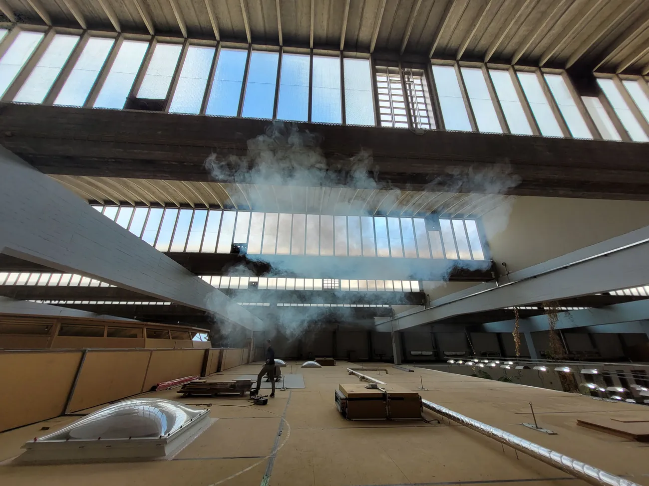 Im Frühjahr 2022 hat Transsolar Rauchversuche im Gebäude durchgeführt.