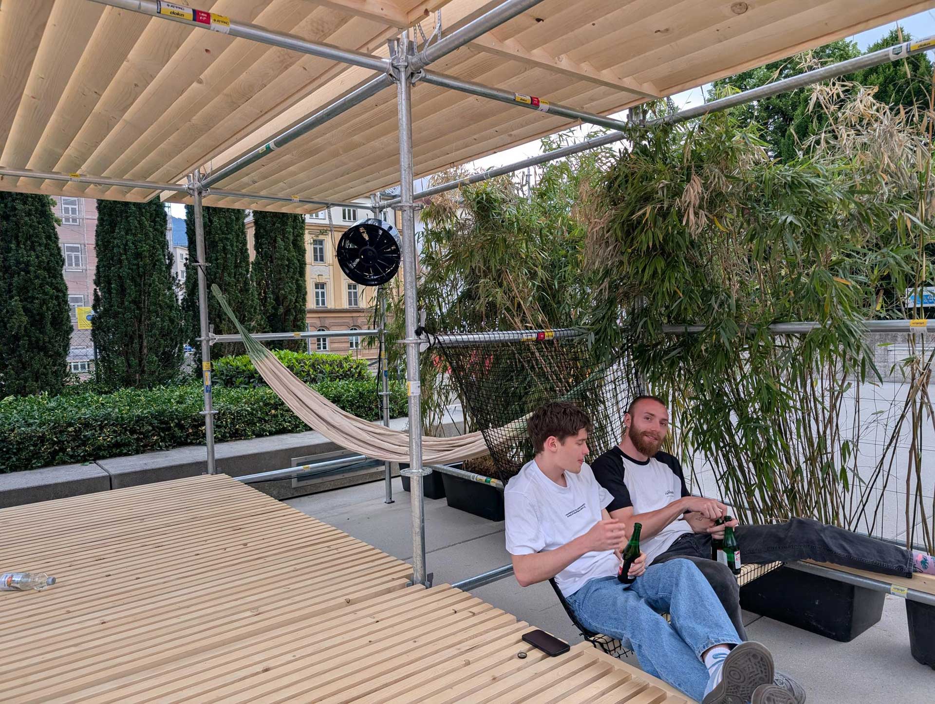 In den kommenden Semestern soll gemeinsam mit den Studierenden ein weiterer Platz in Innsbruck in diese Richtung gestaltet werden, damit ein weiterer attraktiver Ort entsteht, der komfortablen Aufenthalt im Sommer ermöglicht.