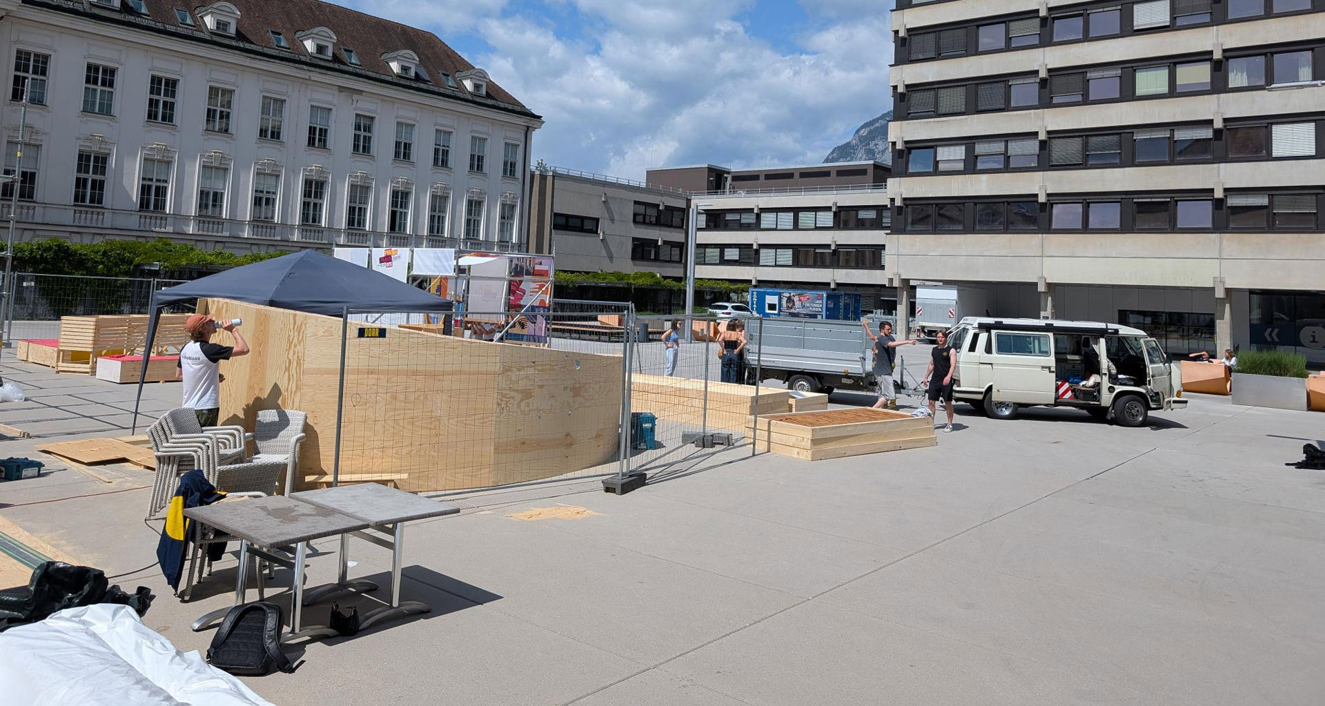 In den letzten Semestern waren Stadtklima und Außenraumkomfort Thema und im Juni 2025 rückte die Errichtung eines „Instant Cool Spots“ in Innsbruck auf dem Geiwi-Platz in den Fokus.