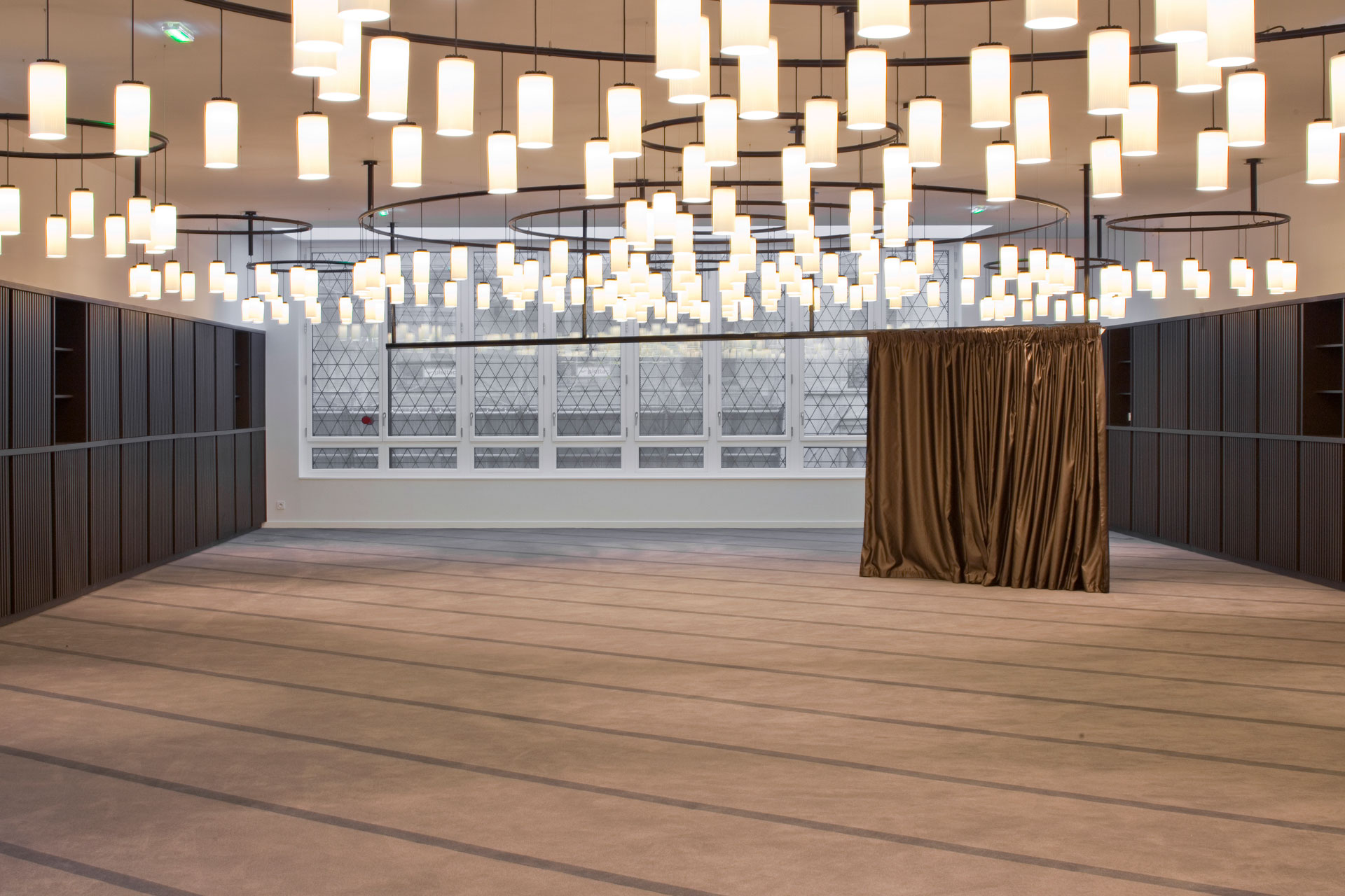 Die hohen Decken der Gebetsräume und der Verkehrsflächen waren entscheidend für das erarbeitete Lüftungskonzept: die Zuluft wird über Erdkanäle vorkonditioniert und bodennah eingebracht, die verbrauchte Luft wird durch natürliche Konvektion mittels eines Abluftkamin ausgeleitet. In diesem ist eine Wärmerückgewinnung integriert, die den Gesamtenergieverbrauch weiter minimiert. Darüber hinaus wurde auf eine Klimaanlage zugunsten einer Nachtluftspülung verzichtet. Bedienbare Fenster in den Büros erlauben so viel natürliche Belüftung wie möglich. Die Warmwasserbereitung erfolgt mittels Solarthermie-Kollektoren; bei Bedarf kann ein Gasheizkessel zugeschalten werden. Durch diese Maßnahmen kann der „Plan Climat“ der Stadt Paris erreicht werden, nämlich ein Primärenergieverbrauch von weniger als kWh 50 / m² / Jahr.
