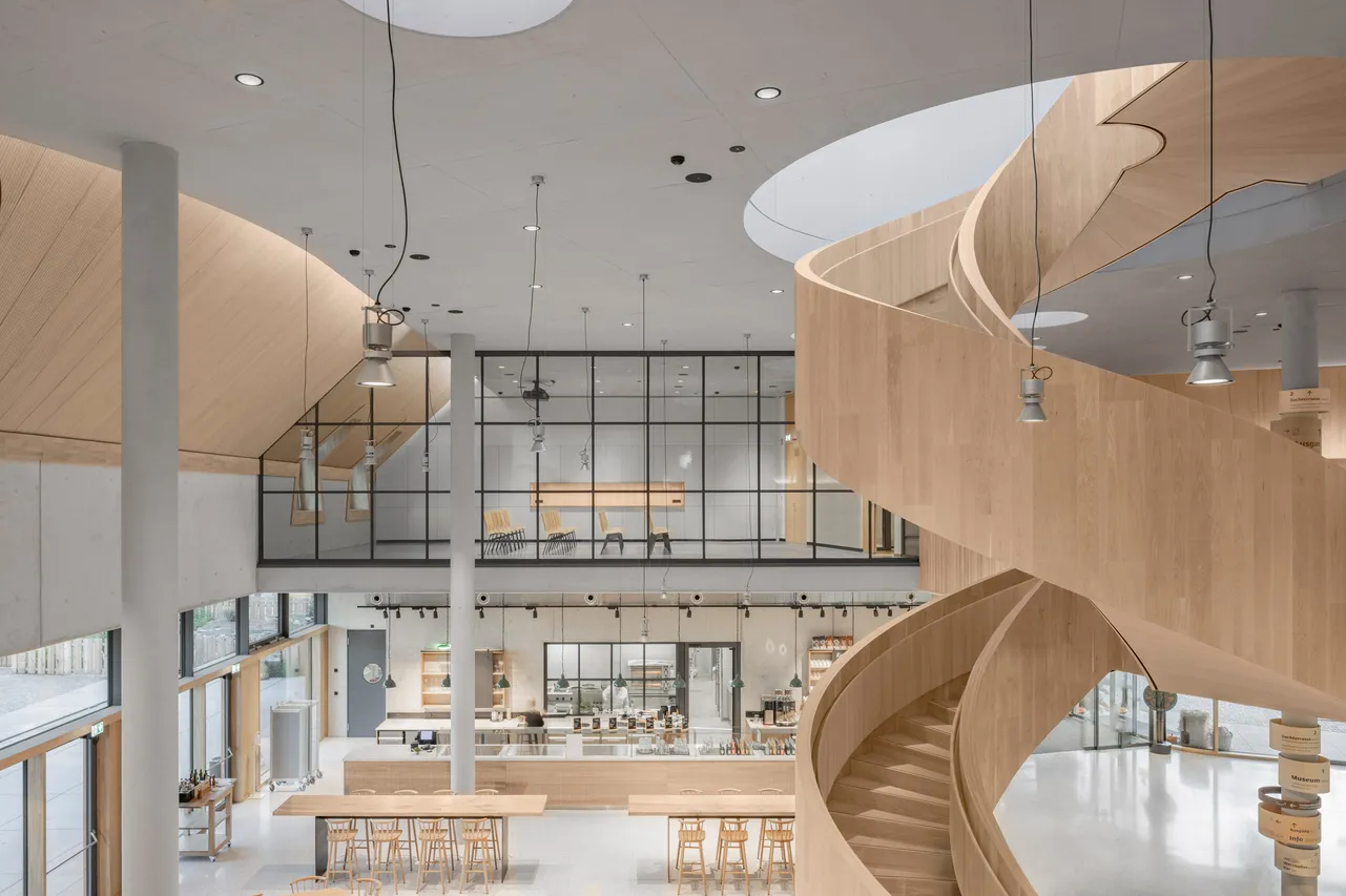 Das Raumprogramm des neuen Besucherzentrums von Rapunzel umfasst 4886 m² Haupt- und Nebennutzflächen mit Ausstellungsbereich und Kaffee-Schaurösterei und beherbergt sowohl eine Bäckerei als auch einen Bioladen. Es gibt Seminarräume, ein Kochstudio und einen Weinkeller mit Bewirtung. Im Empfangsbereich bietet ein Café eigene Speisen und Getränke an. Im Sommer wird auch der große Außenbereich genutzt.