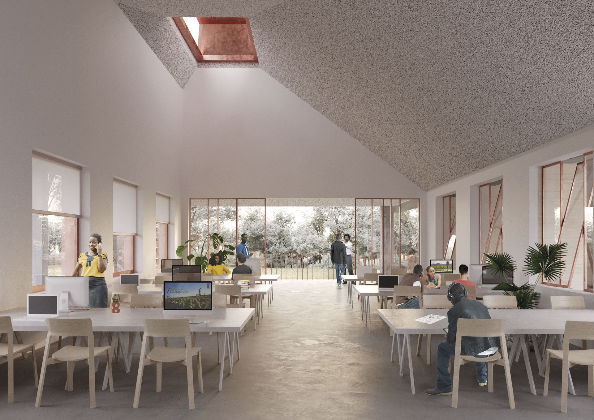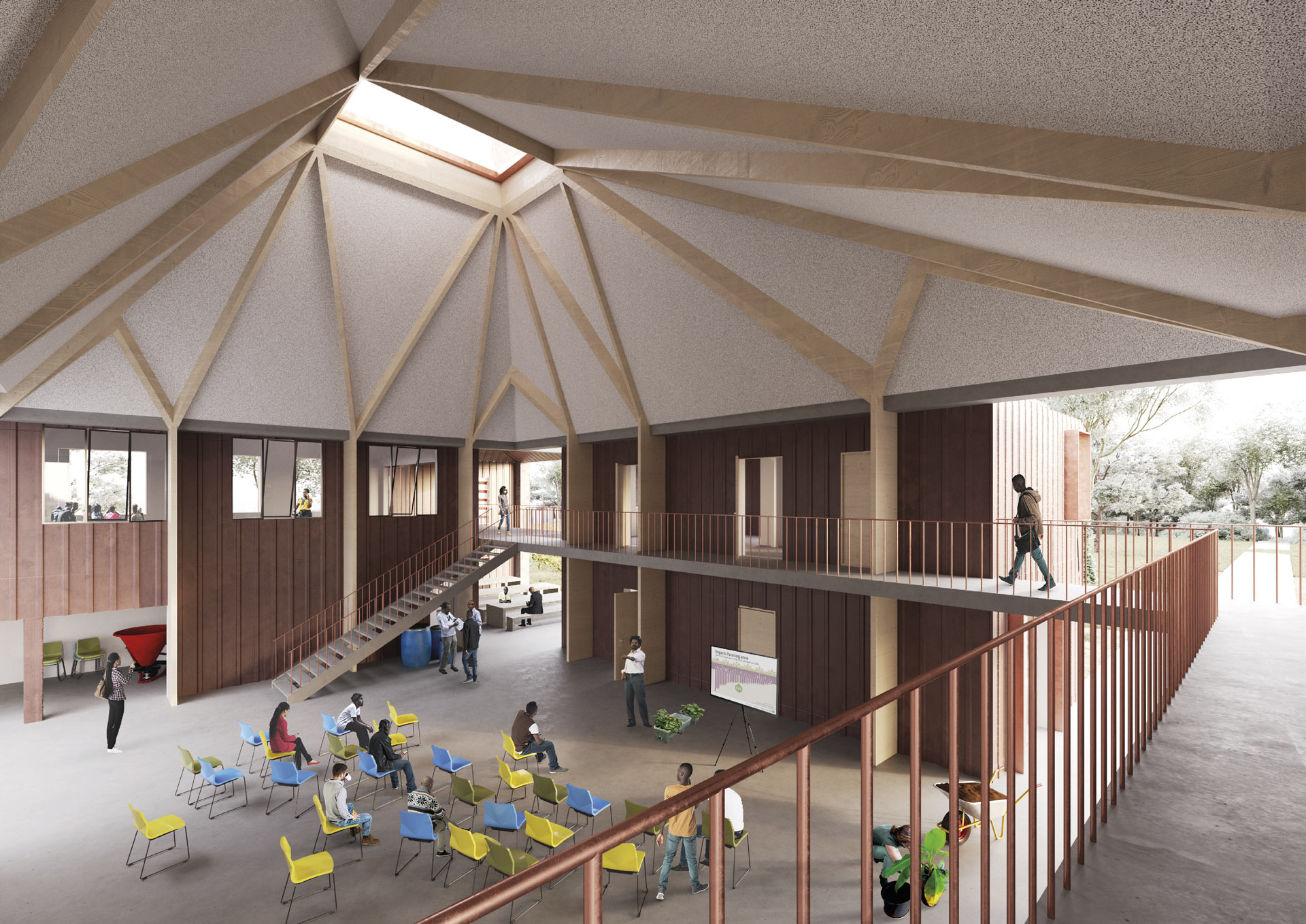 Das Gebäude besteht aus vier verschiedenen Einheiten, die sich um einen zentralen, überdachten Innenhof gruppieren. Der Innenhof bildet den Kern, in dem sich die Menschen treffen, Ideen austauschen, lehren und lernen. Hier ist Platz für die Präsentation von Informationen und Innovationen. Das Gebäude mit seinen ikonisch geformten Dächern soll ein Wahrzeichen sein, das die natürliche Landschaft des Lilongwe-Tals und seine isolierten, im Tal verstreuten Berge widerspiegelt. Die Kupferverkleidung wurde als durchgehendes Material verwendet, das sowohl die Fassade als auch die Dächer verbindet und einen einladenden und monolithischen Eindruck vermittelt.