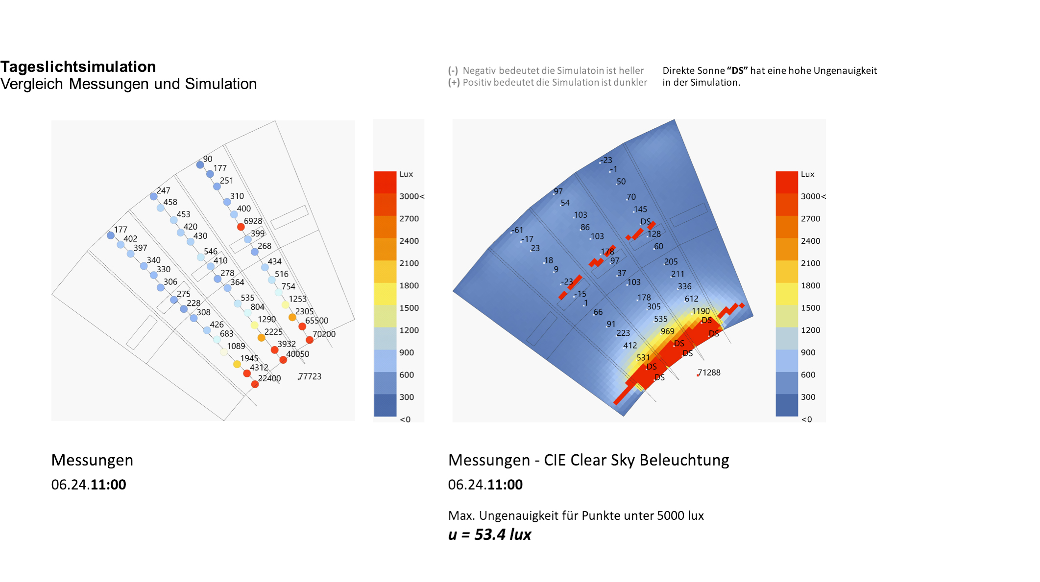 Im Sommer sorgt optimierte Nachtluftspülung mit Querlüftung durch Fassade und Oberlichter für Kühlung. Auch die Speichereffekte bei größtenteils nicht abgehängter Decke wirken gegen Überhitzung im Sommer, wie auch außen liegender beweglicher Sonnenschutz und die bauliche Verschattung der Tore.