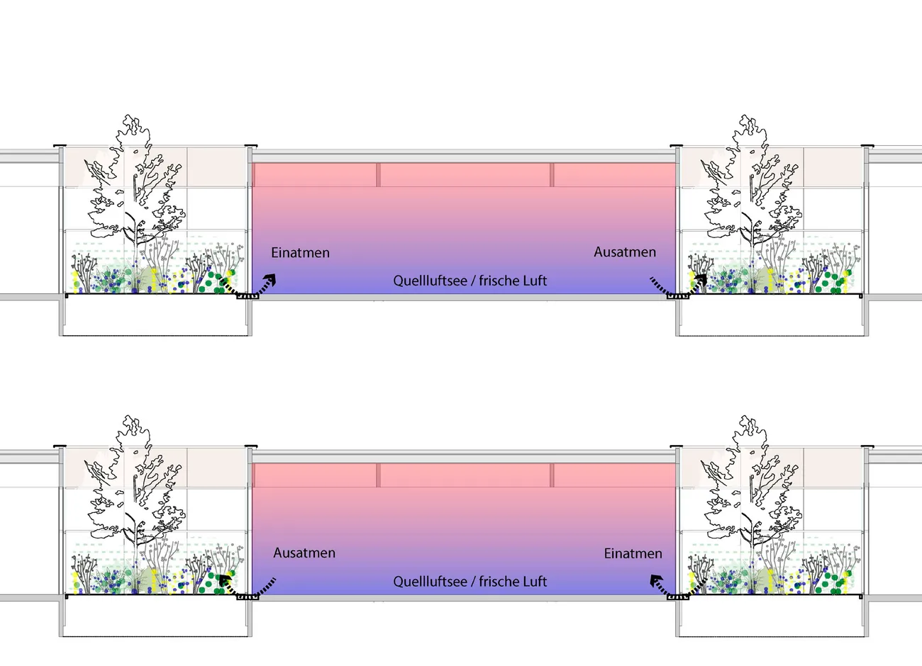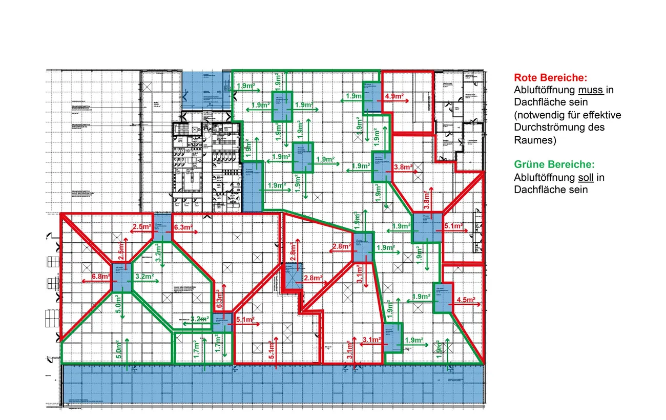 Transsolar hat das Energie- und Klimakonzept hinsichtlich thermischer Behaglichkeit, Frischluftqualität, solarer Gewinne, Verschattung und Tageslicht integral entwickelt und die Funktion mit Hilfe von dynamischer Simulationen für Gebäude und Tageslicht optimiert. Ein gänzlich innovativer Bestandteil des Gebäudes sind die 13 bepflanzten Lichthöfe – ein architektonisches und klimatechnisches Novum für ein Betriebsgebäude. Die zwischen 20 - 30 m² großen und Baumbepflanzten Lichthöfe tragen nicht nur wesentlich zur natürlichen Belichtung bei, sondern dienen auch der natürlichen Durchlüftung des Gebäudes.