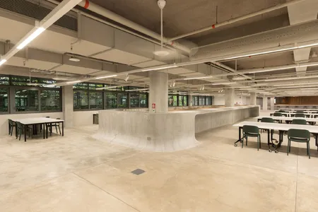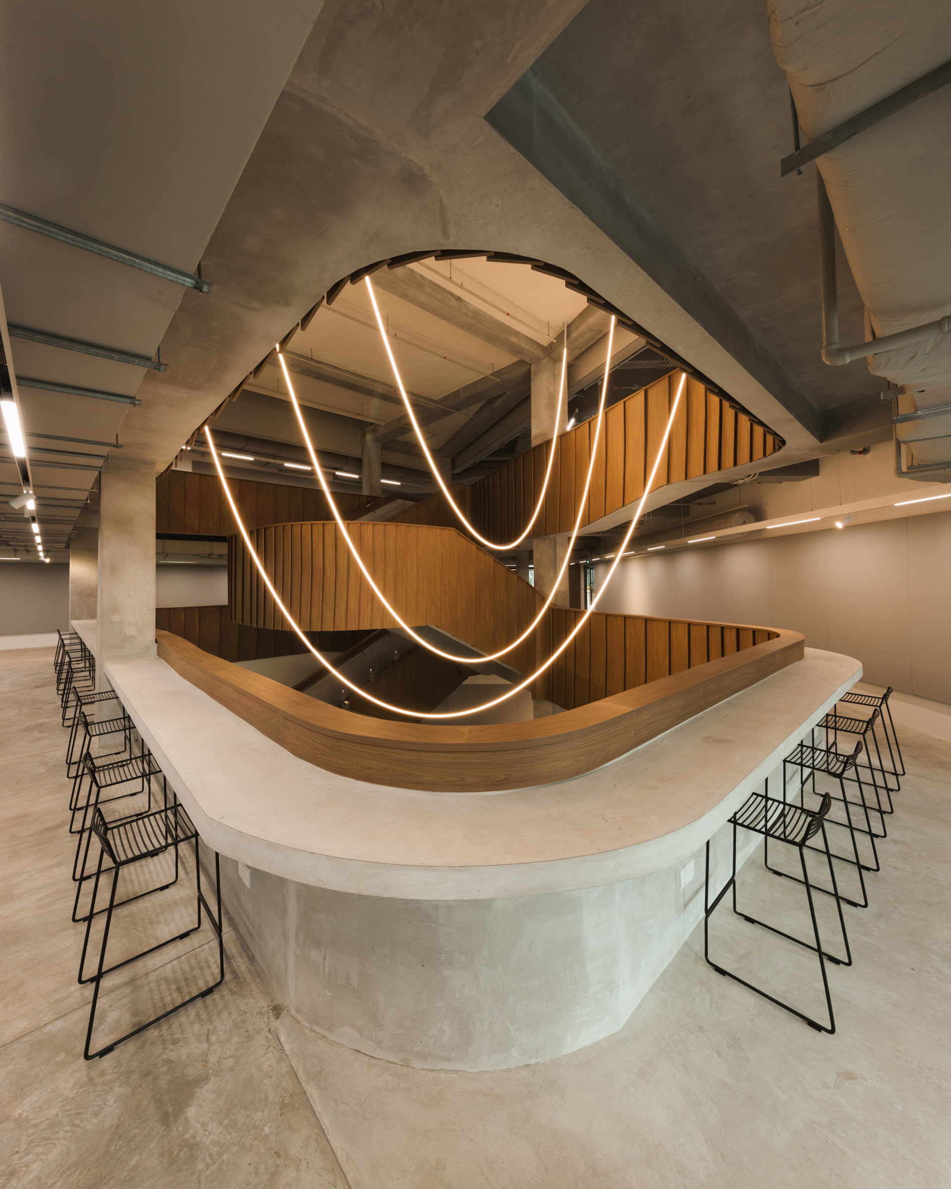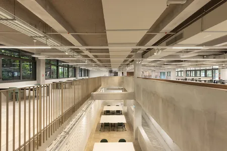 Die Bestandsgebäude mit einer BGF von 22.000 m² stammen aus den späten 1970er Jahren, einer Zeit, in der HLK-Systeme für das Gebäudeklima sorgten. Daher gab es Zwischendecken für die Kanalführung des Kühl- und Lüftungssystems mit einer Abhängung von bis zu 1,8 m. Um die Vorteile der bestehenden Struktur zu Gunsten der Raumqualität zu nutzen, wurde vorgeschlagen die Zwischendecken zu entfernen.