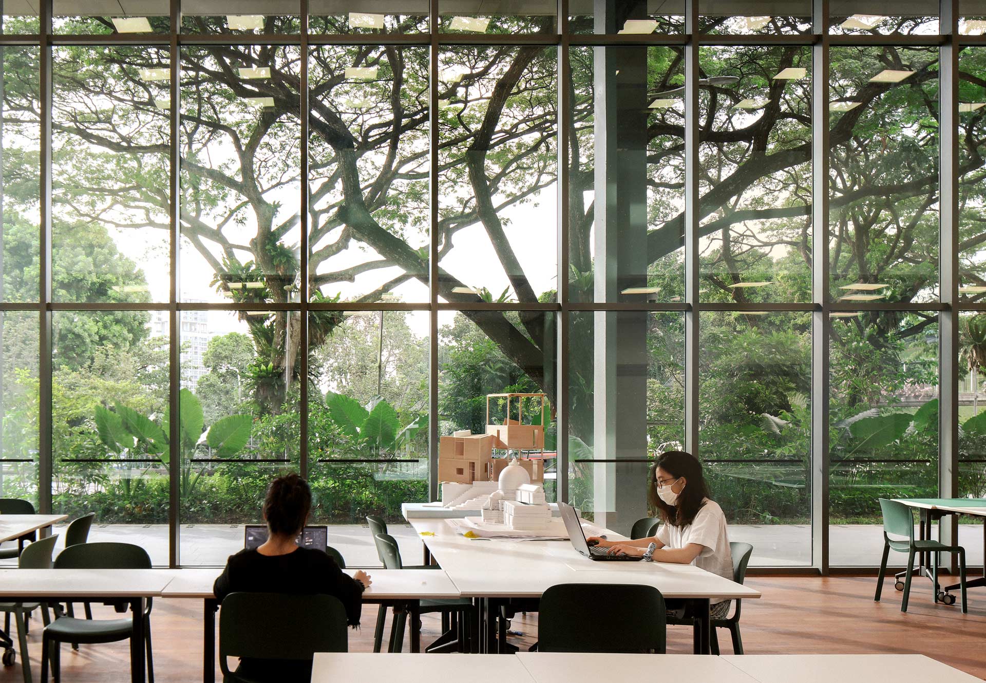 Zwei Gebäude der School of Design and Environment der Universität Singapur, SDE 1 & 3, sollten so saniert werden, dass bei inspirierender architektonischer Qualität ihr Energieverbrauch im Betrieb auf Netto-Null sinkt. Die Ziele für Transsolar waren, Komfort bei besonders niedrigem Energiebedarf sicherzustellen und CO2-Emissionen möglichst niedrig zu halten, wozu auch der Erhalt des Rohbaus zählt. Die Gebäude erwiesen sich geeignet, bei Wiederverwendung der Rohbausubstanz durch Modernisierung der Fassaden sowie durch Innovationen in der thermischen Zonierung, beste Aufenthaltsqualität mit vollem thermischem Komfort in den Tropen zu ermöglichen.