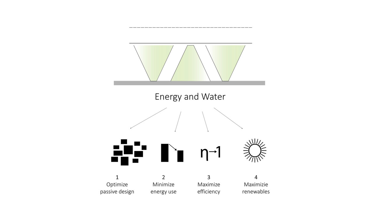 Transsolar hat das Energie-, Klima- und Wasserkonzept des Pavillons entwickelt, den Kunden, das Gastronomie-Team, die Aussteller und das Designteam durch eine Reihe von Designiterationen geführt, um Bedarf und Erzeugung von Wasser und Energie so abzustimmen, dass die angestrebte ausgeglichene Wasser- und Energiebilanz möglich wird.