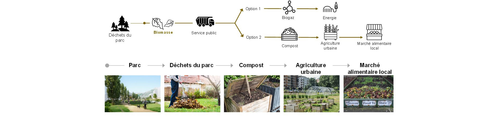 Die Stromversorgung wird durch begrünte Photovoltaik-Dächer und das Netz gewährleistet. Die Implementierung eines Smart Grids auf Stadtteilebene gewährleistet den Stromaustausch zwischen den verschiedenen Programmen, um letztendlich bilanzielle CO2-Neutralität zu erreichen. Obendrein tragen von den Bewohnern bewirtschaftete städtische Gemüsegärten in den Höfen der Häuserblocks zur lokalen Ernährung bei. Diese Gemüsegärten, die mit Kompost aus den Grünabfällen der Parks gedüngt werden, sorgen für eine gewisse soziale Nachhaltigkeit zwischen den Bewohnern des Stadtteils.