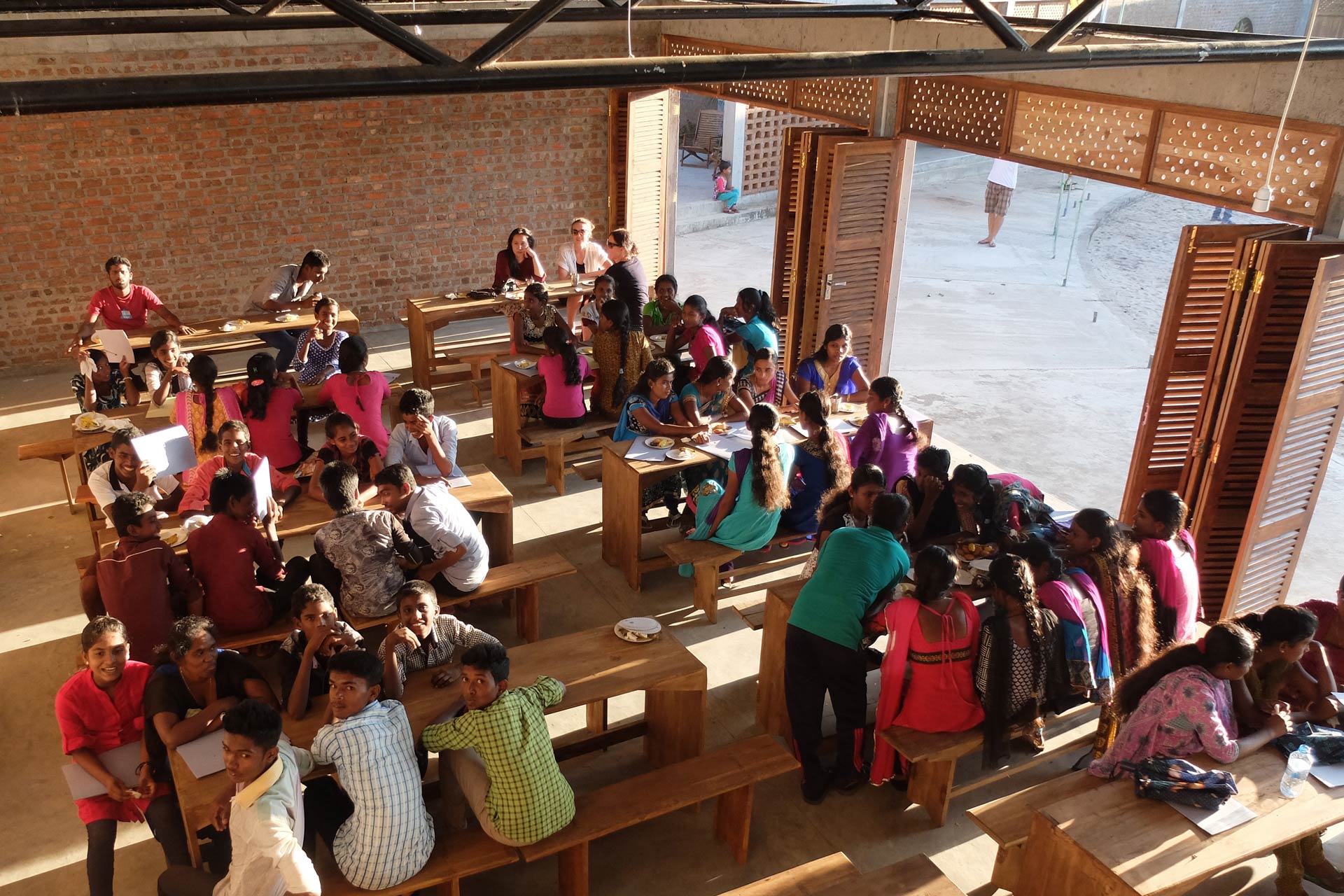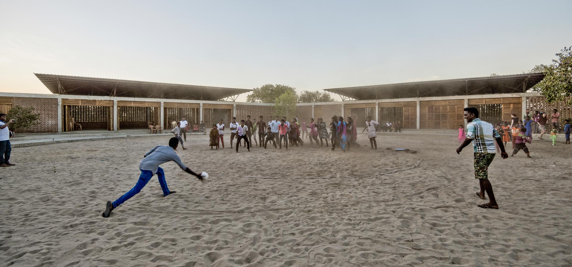 Der Ort Parangiyamadu liegt im Osten von Sri Lanka, einer von Bürgerkrieg und Tsunami zerstörten Region. Dem rasch neuaufgebauten Dorf fehlt eine gewachsene Struktur und ein Zentrum als Ort der Identifikation. Die vorhandenen Grundschulgebäude sind schlecht ausgestattet und unzureichend; aus Betonziegeln mit Holzdächern gebaut, sind sie zwar stabil, aber schlecht durchlüftet und haben auch keine überdachten Außenbereiche.