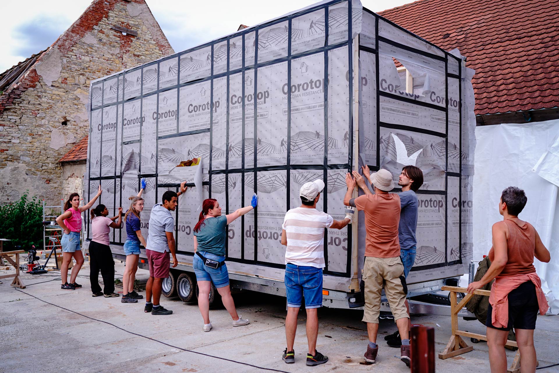Die Bauweise war von Anfang an so konzipiert, dass die Rahmen und die Tragkonstruktion der einzelnen Wände auf dem Boden errichtet und dann auf den Sockel gehoben und befestigt wurden. Diese modulare Bauweise ermöglichte es, dass mehrere Teams gleichzeitig an verschiedenen Teilen des Tiny Houses arbeiten konnten.