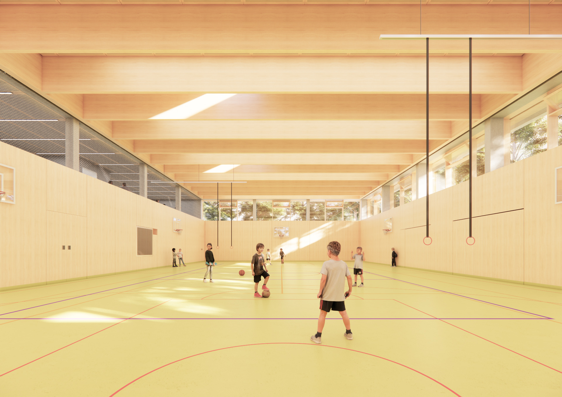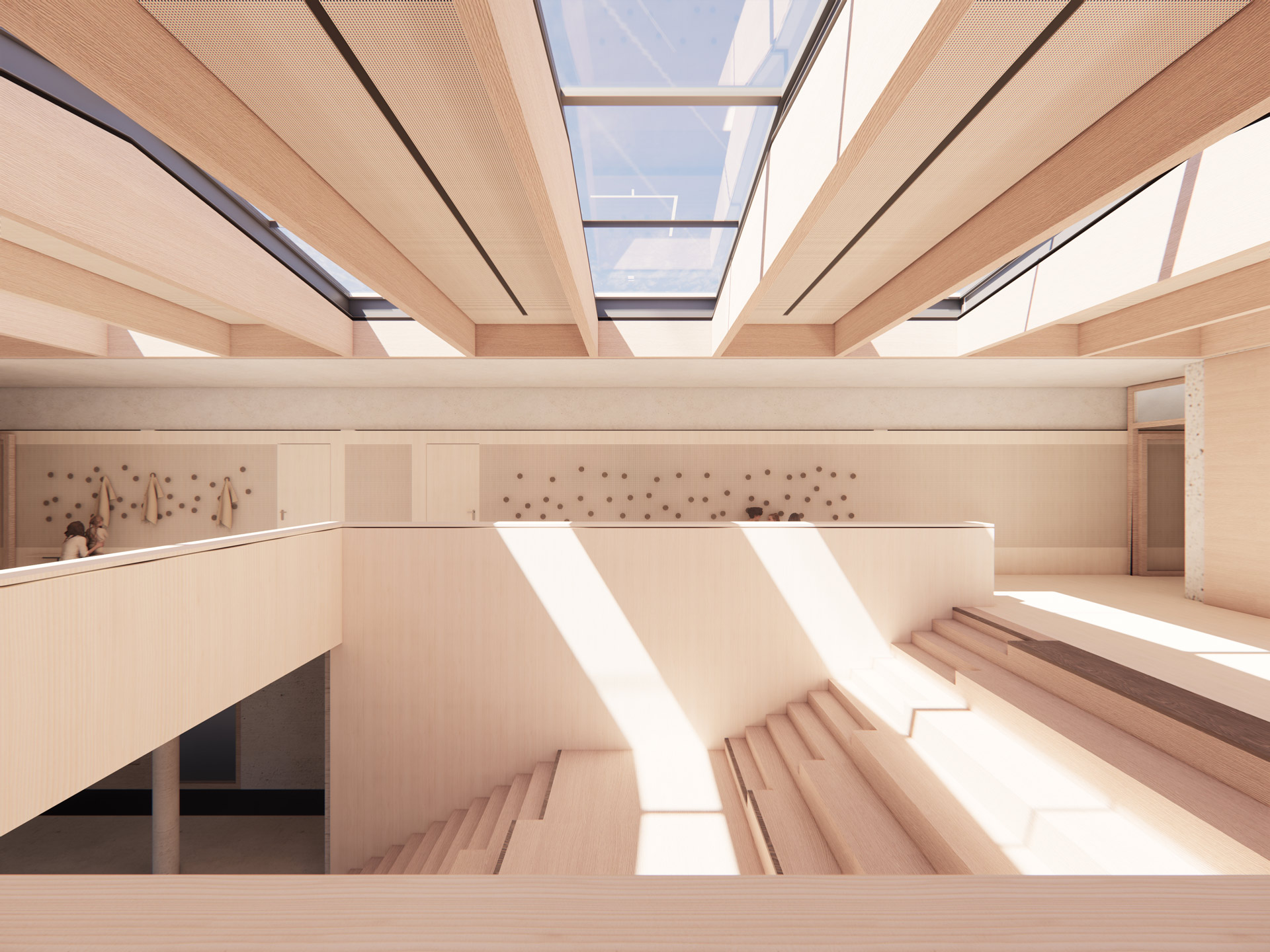 Lediglich die Mensa der Schule und die Sporthalle sowie innenliegende Sanitär- und Nebenräume erhalten jeweils eine mechanische Lüftung.