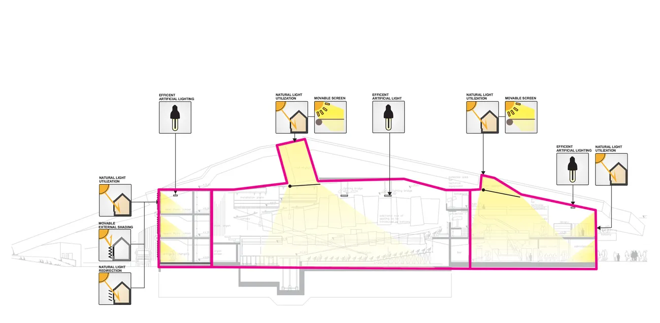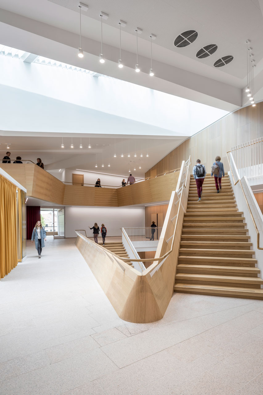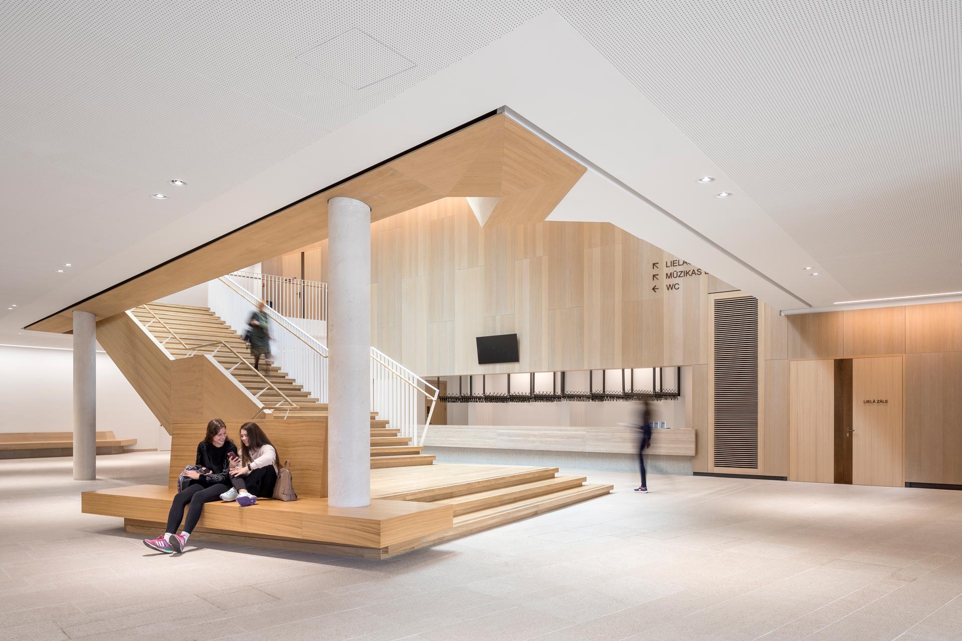 In das Projekt der Musikschule von Ventspils mit Konzerthalle war TRANSSOLAR bereits ab Beginn der Planung eingebunden und blieb beratend bis zur Bauphase an der Seite des Kunden. Unser Fokus lag auf den Themen der Energieeffizienz durch raumweisen Betrieb der Systeme, hybrider Belüftung und der Minimierung der technischen Ausrüstung im Hinblick auf die Lastreduzierung. Ziel war es, ein einzigartiges und ikonisches Gebäude auch in Bezug auf Aufenthaltsqualität und Energieeffizienz zu erhalten, optimiert für das lokale Klima, bei dem das Thema Heizung dominiert. Dafür wurde jede einzelne Komponente der Gebäudetechnik auf hohen Wirkungsgrad ausgelegt. Mit thermischen und Tageslichtsimulationen wurde in einem integralen Planungsprozess der architektonische Entwurf entwickelt und optimiert.
