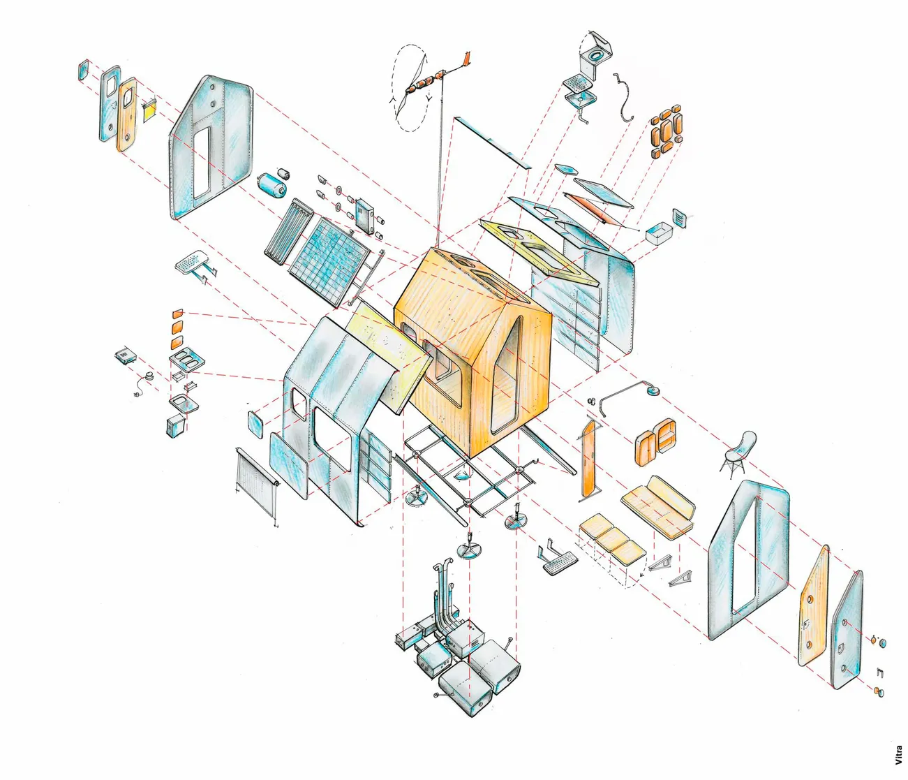 Das Nachhaltigkeitskonzept folgt dem Gedanken, einen effizienten und nachhaltigen Umgang mit natürlichen Ressourcen der lokalen und globalen Umwelt ganzheitlich zu erfassen. Die Vision, alle Funktionen von Wohnen + Arbeiten auf kleinstem „Footprint“ zu vereinigen, spiegelt sich auch im geringen CO2 Fußabdruck in Herstellung und Betrieb wieder, wobei Suffizienz und Effizienz die Schlüsselkonzepte sind. Diogene besteht mehrheitlich aus dem nachwachsenden Rohstoff Holz und die 2 mm dünne Aluminiumhülle zum dauerhaften Witterungsschutz aus 95% rezykliertem Metall. Die Gebäudehülle hat einen durchschnittlichen U Wert von 0.3, inklusive der rahmenlosen Fenstern (Wärmebrücken nicht berücksichtigt), was die gesetzlichen Energieanforderungen für ein Haus in Deutschland und damit für ganz Europa erfüllt. Dies wird erreicht durch hochisolierende Vakuum-Panels zwischen der tragenden Holzkonstruktion und der schützenden Aluminiumschicht. Großzügige Fenster in Fassade und Dach sorgen für sehr gutes Tageslicht, ein externer Sonnenschutz verhindert das Eindringen von solaren Lasten im Sommer. Weitere Maßnahmen, die den Bedarf an Ressourcen minimieren, sind neben einer mechanischen Grundlüftung mit Wärmerückgewinnung natürliche Lüftungsöffnungen im Dachfirst, und eine Komposttoilette, die durch Trennung von fest und flüssig ohne wertvolles Trinkwasser auskommt. Letzteres wird in Rinnen gesammelt und kann in 300 Liter Regenwassertanks gespeichert werden, Abwasser von Küche und Dusche (Grauwasser genannt) wird ebenfalls gesammelt. Der verbleibende Heizbedarf wird dem Wohnbereich über Umluft zugeführt und mittels einer Wärmepumpe gesichert. Diese entzieht der umgebenden Luft die Wärme, angetrieben über einen Bruchteil an elektrischer Energie. Im Sommer kann in warmen Regionen hierdurch auch gekühlt werden. Für kalte Regionen ist ein Erweiterung auf eine Erdreichwärmepumpe geplant. Der Strom selbst wird von 2 Photovoltaikpanelen generiert (400 Watt-Peak) und kann in Batterien (ca. 7 KWh Speicherfähigkeit) gespeichert werden. Bei Bewölkung kann so eine Netzunabhängigkeit von 3 bis 5 Tagen gewährleistet werden. Auch warmes Wasser wird über Sonneneinstrahlung gewonnen und in einem Tank auf der Nordseite des Daches gespeichert.