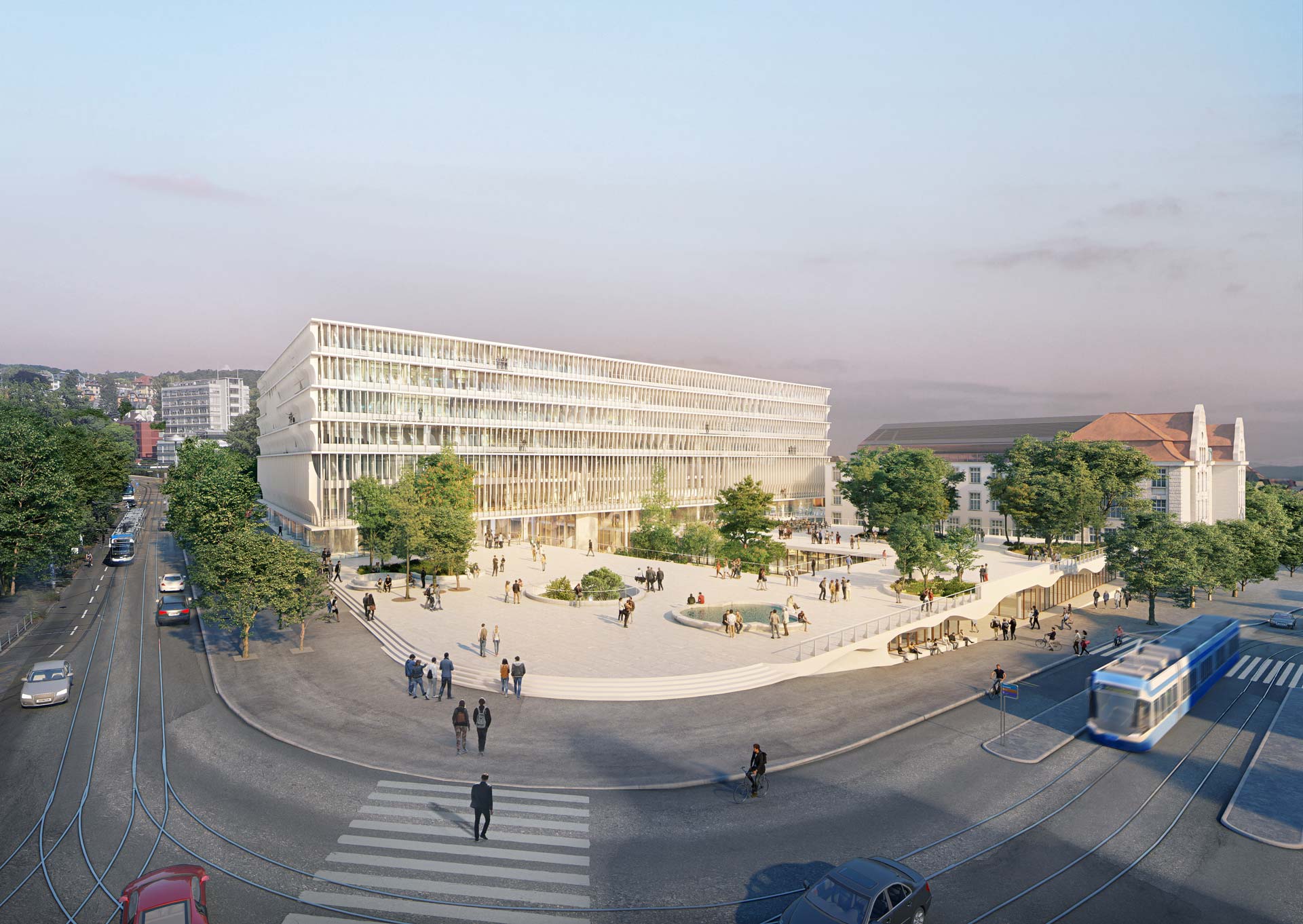 Zusammen mit dem GP-Team arbeitet Transsolar an der Entwicklung sowie Validierung der Konzeptionen für Energie, thermischem Komfort und Tageslicht. Konzeptbestandteile sind beispielsweise die zukünftige Einbindung eines Seewasseranschlusses zur thermischen Nutzung des Zürichsees, Abwärmenutzung, weitestgehende natürliche Belichtung sowie Eigenstromerzeugung durch Photovoltaik.