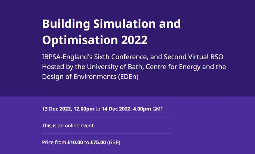 The Building Simulation and Optimisation 2022 will be an online event. The IBPSA-England's Sixth Conference and Second Virtual BSO is hosted by the University of Bath, Centre for Energy and the Design of Environments (EDEn). Wolfgang Kessling is invited as keynote speaker.