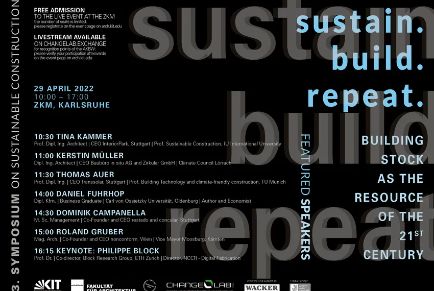 The symposium sustain.build.repeat. is dedicated to the resource of the 21st century: our building stock. With growing waste volumes and ever scarcer raw materials, careless building demolitions and replacements must be avoided. Instead, existing buildings should be converted and rebuilt, components removed, reused and reused again. The linear system geared towards the demolition of buildings corresponds neither to an economic nor to an ecological handling of the resources at our disposal. The embodied energy stored in the materials used, in transport and in construction, as well as the cultural and social value of architecture are lost. It is therefore important to think in cycles and to preserve as much of the existing building stock as possible on the premise of resource- and climate-friendly architecture.