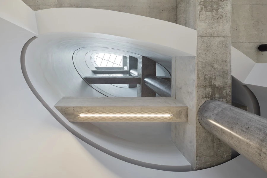 L'activation des équipements du bâtiment en combinaison avec des convecteurs en pied de façade conditionne les espaces. La masse thermique du bâtiment, délibérément exposée, assure son inertie thermique et ainsi des changements de température lents.