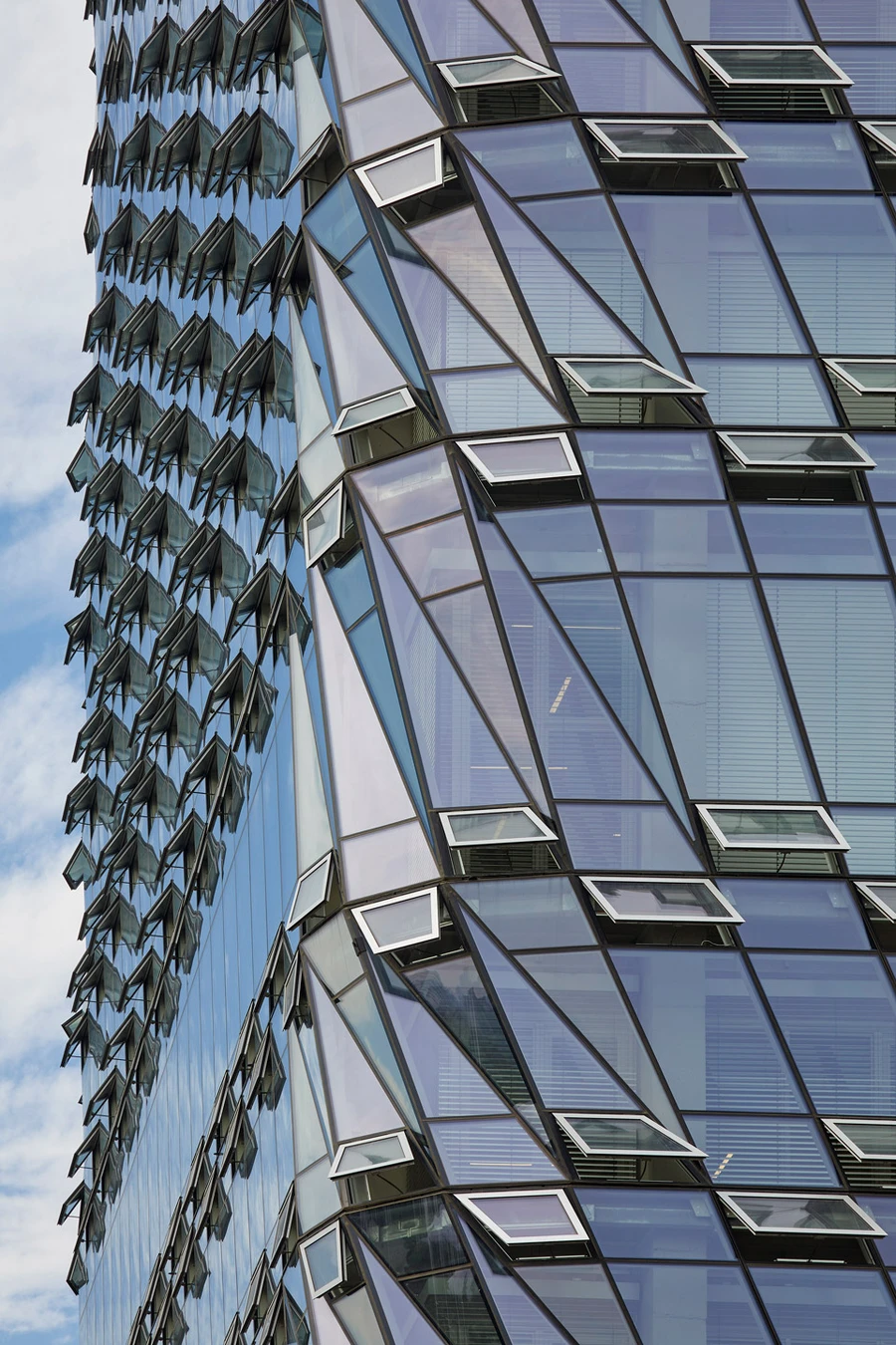 Le nouveau bâtiment voisin, appelé "Block", possède également une double façade à contrôle automatique, mais sa construction se distingue de celle de la tour par une enveloppe thermique intérieure plus classique. Ici aussi, les apports solaires passifs sont maximisés en hiver et la ventilation naturelle du bâtiment, protégée contre les intempéries, est rendue possible.