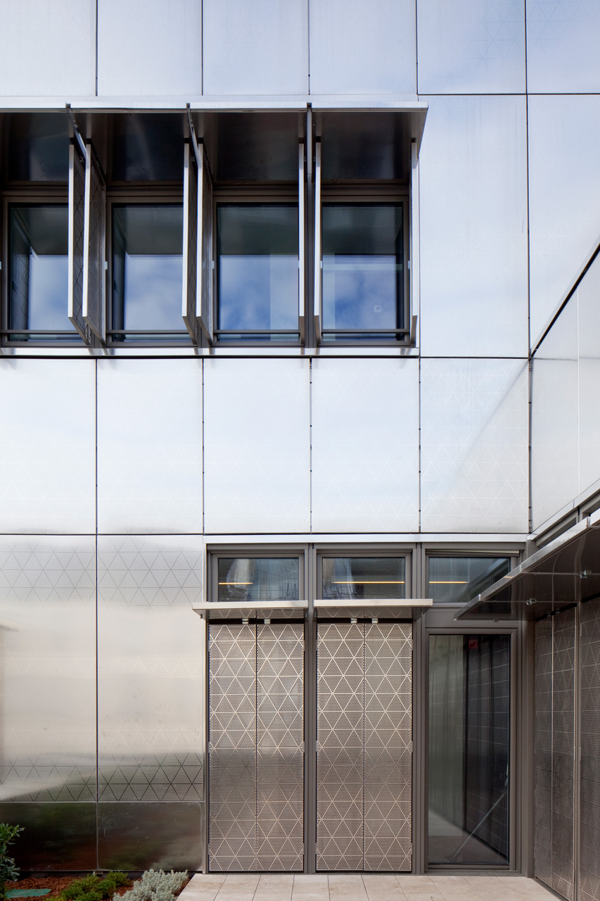 Les bureaux sont ventilés naturellement tant que possible par ouverture des fenêtres. En plus de ces différents systèmes, des panneaux solaires thermiques et photovoltaïques permettent de fournir la majeure partie de la demande en ECS, l’appoint étant réalisé par chaudière gaz. L’ensemble de ces mesures permettent au projet de respecter le Plan Climat de Paris, à savoir une consommation énergétique primaire n’éxédant pas 50 kWhep/m²/an.