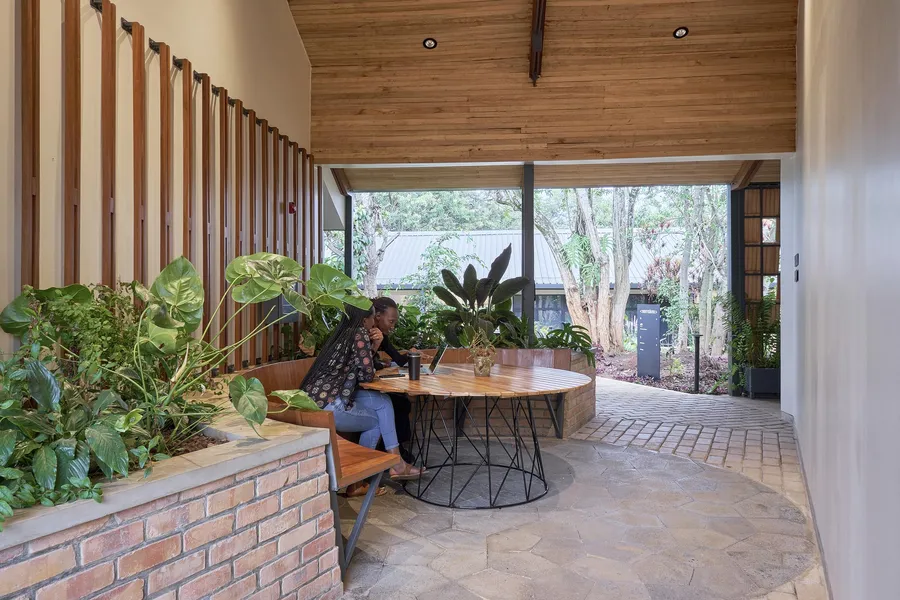 Norrsken Kigali House includes spaces for a range of sizes and workspaces, from large collaborative spaces to quiet individual workspaces, as well as landscaped and semi-public outdoor areas. Transsolar supported the building's climate responsive design by supporting the MASS team in reviewing their analysis and providing strategic direction for daylight, natural ventilation, comfort and energy use.
