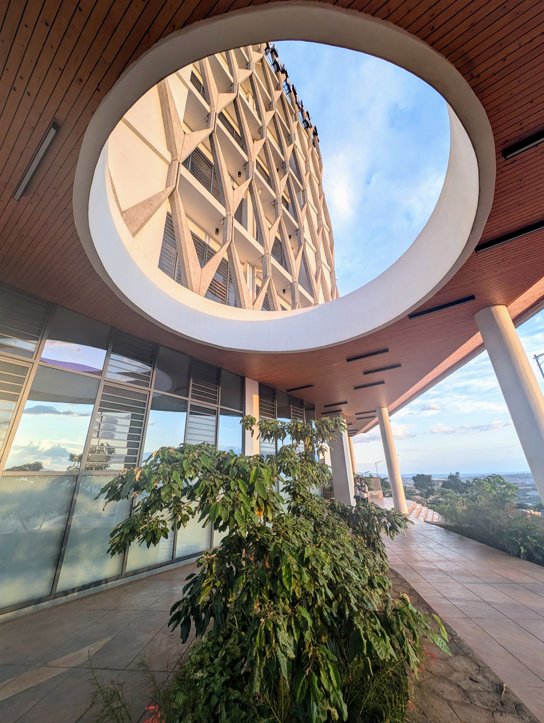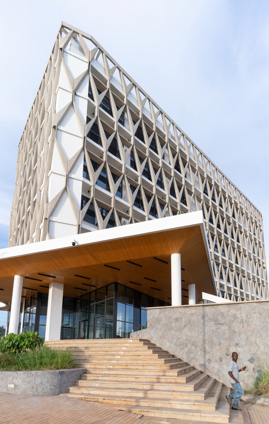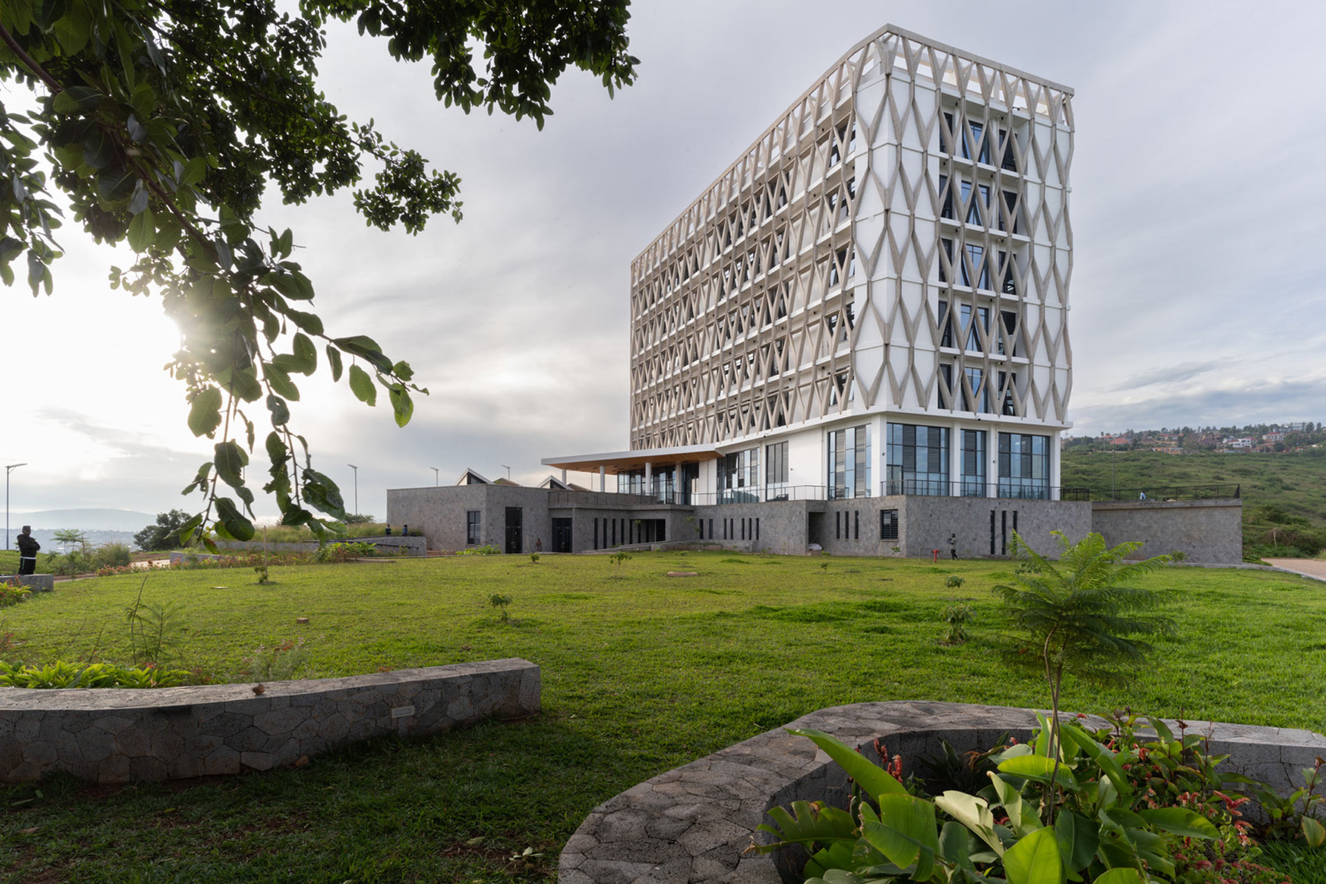The seven-story building’s innovative and unique facade draws upon the local craft tradition of ‘imigongo’ for its pattern.